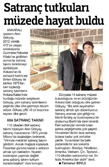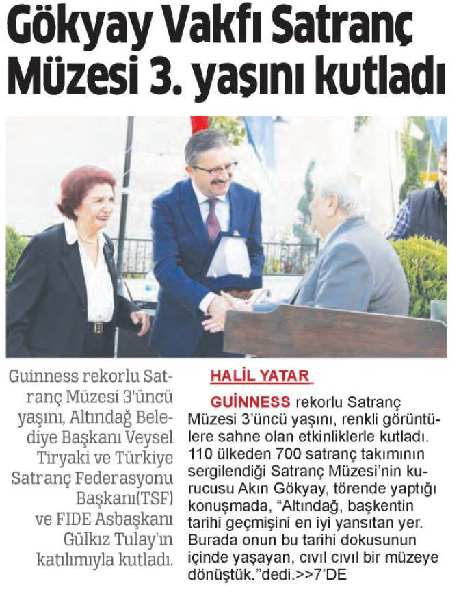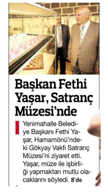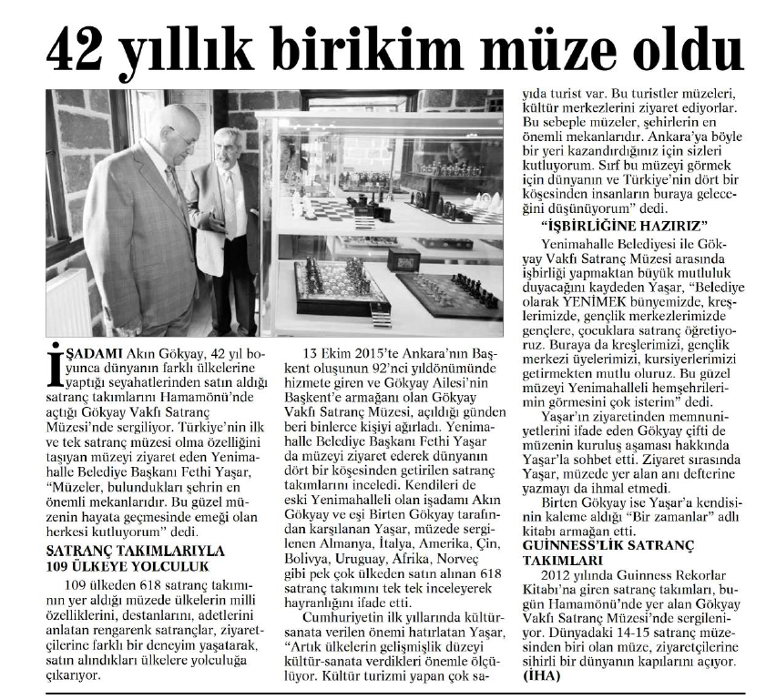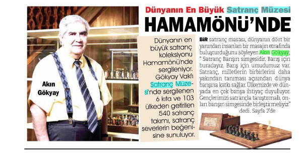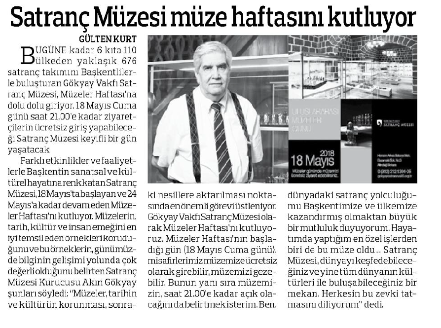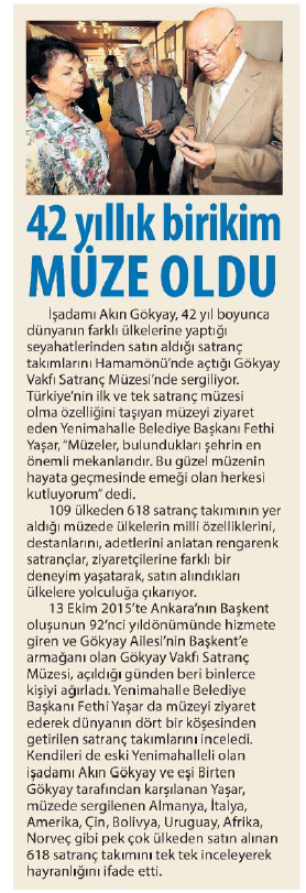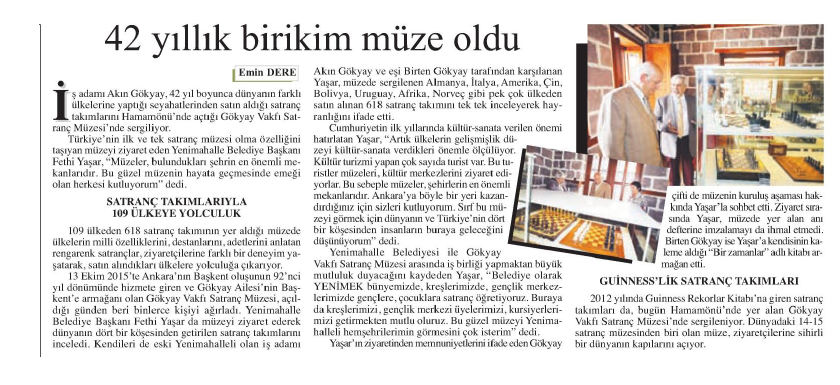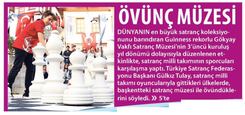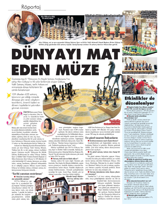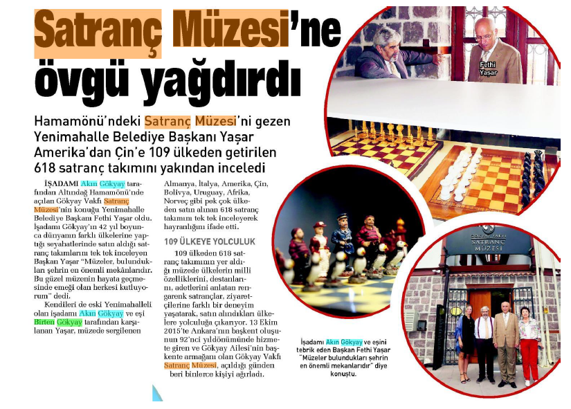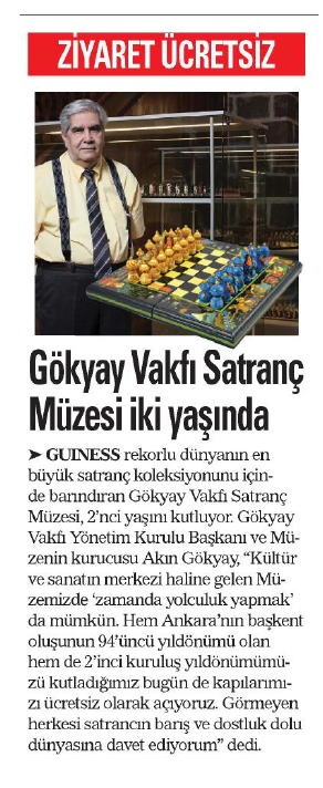 14.10.2018 / Milliyet AnkaraTürkiye'nin Övündüğü Satranç Müzesi