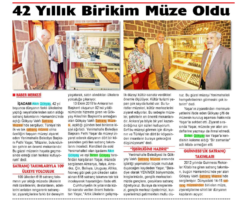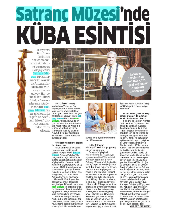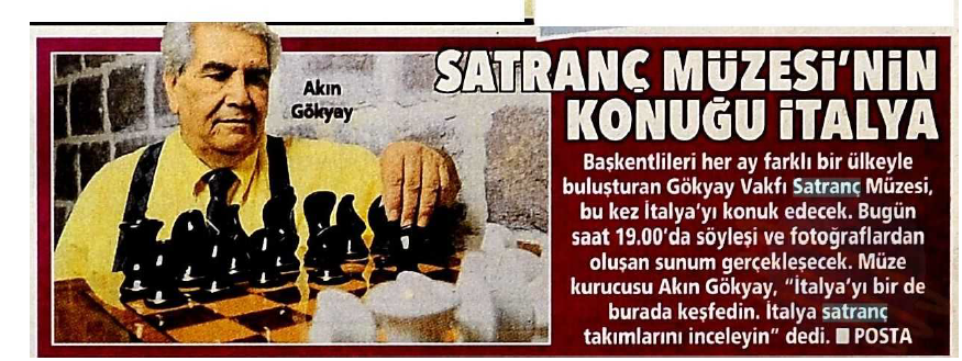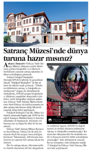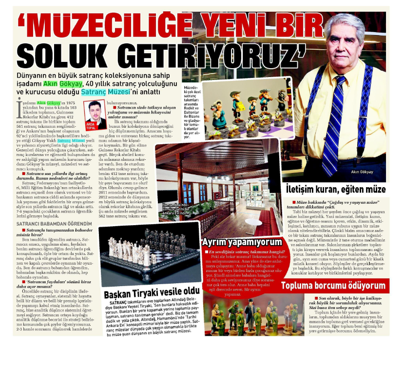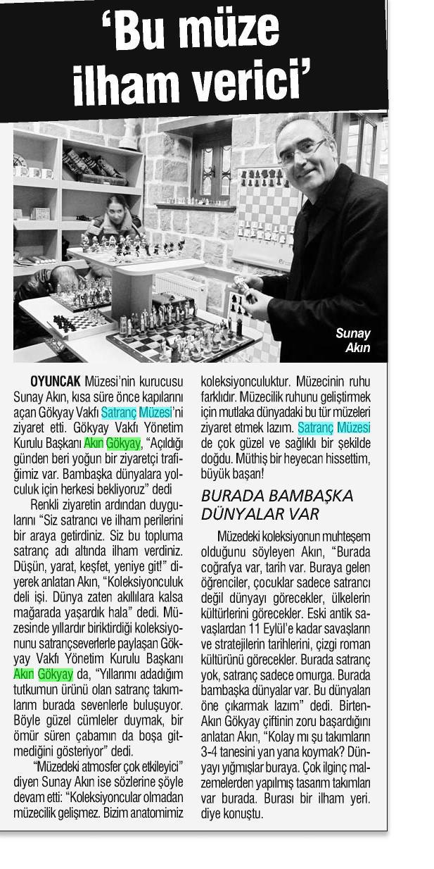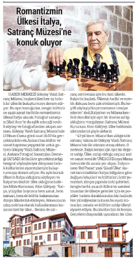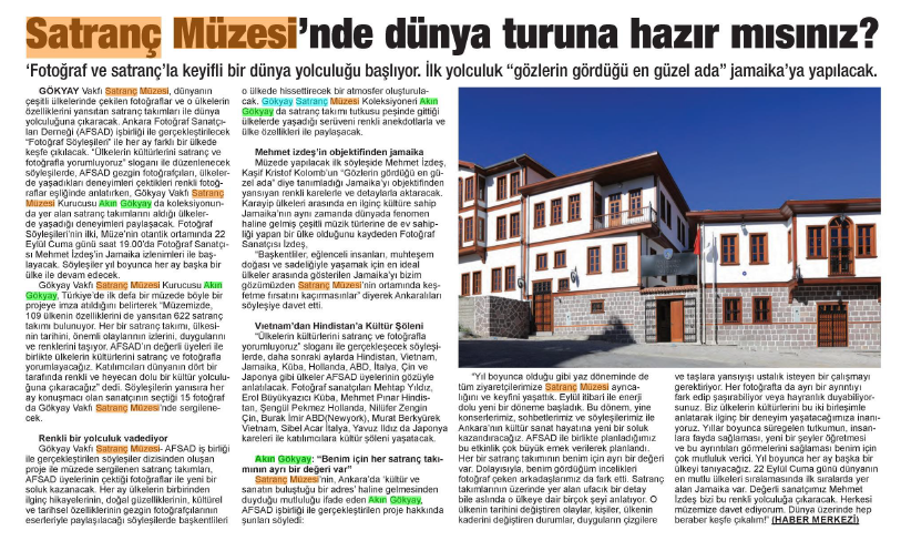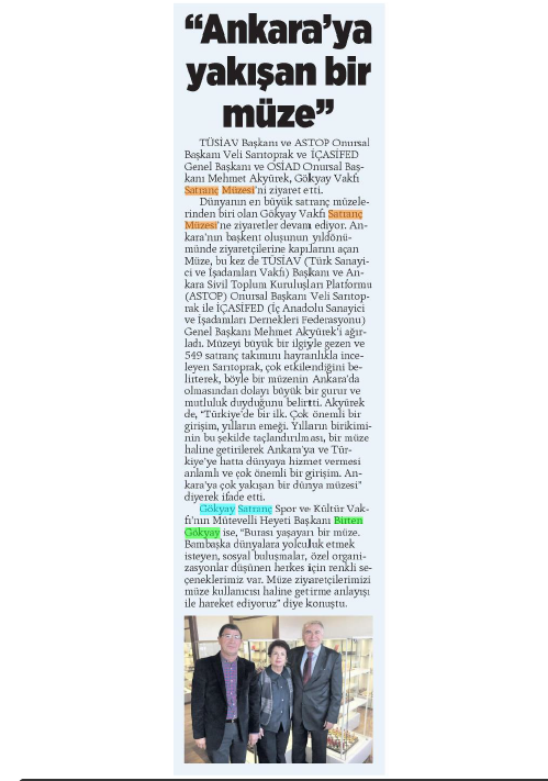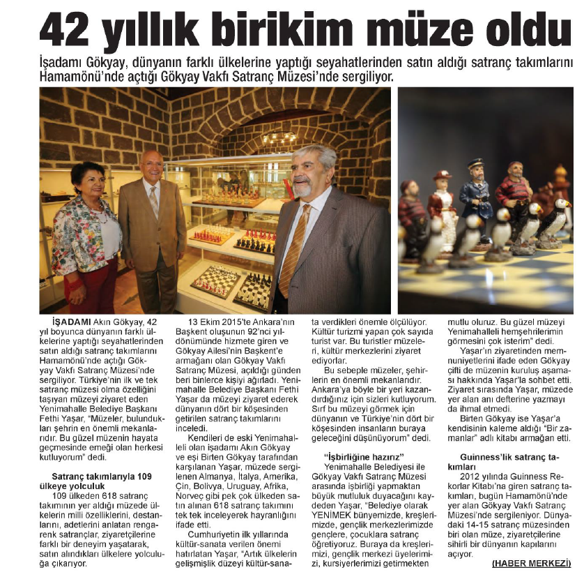 14.10.2018 / Milliyet AnkaraTürkiye'nin Övündüğü Satranç Müzesi