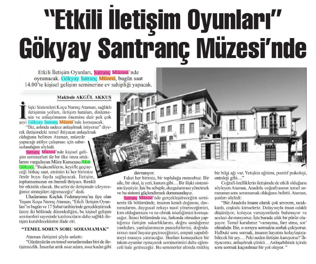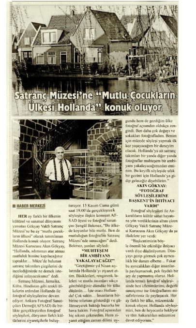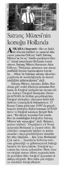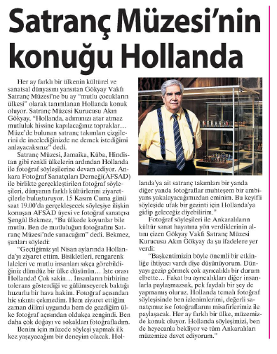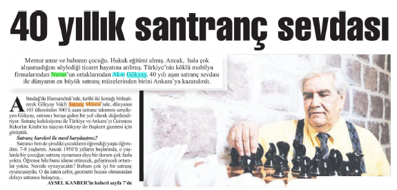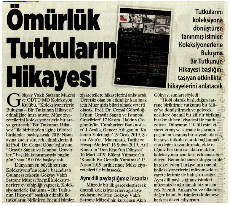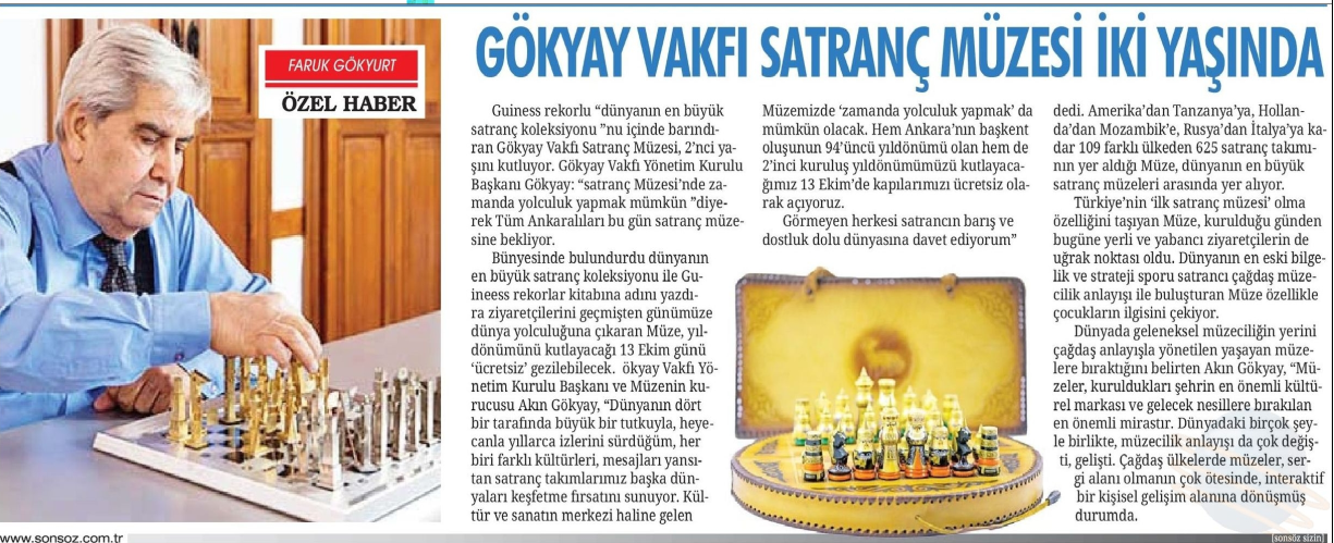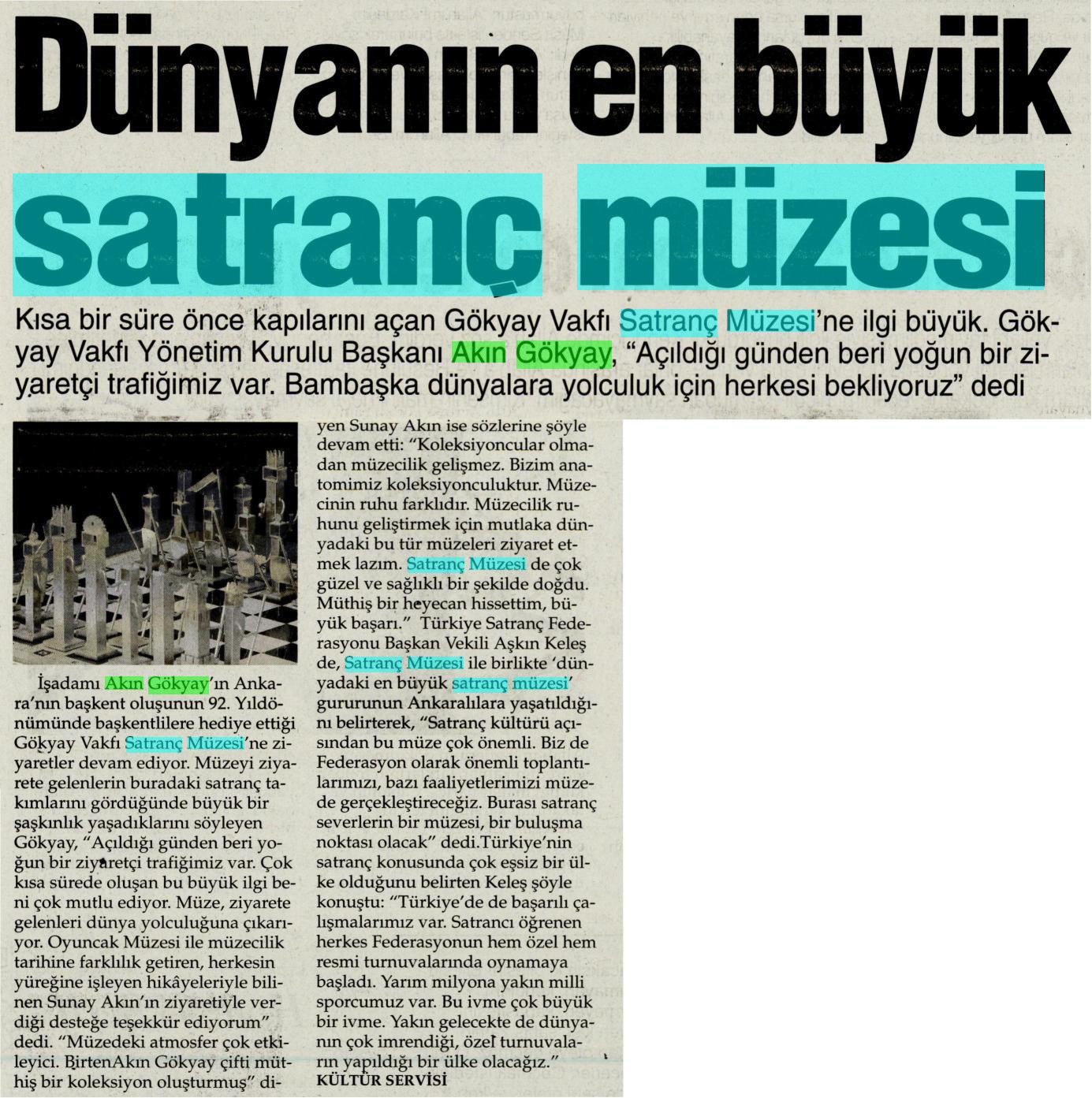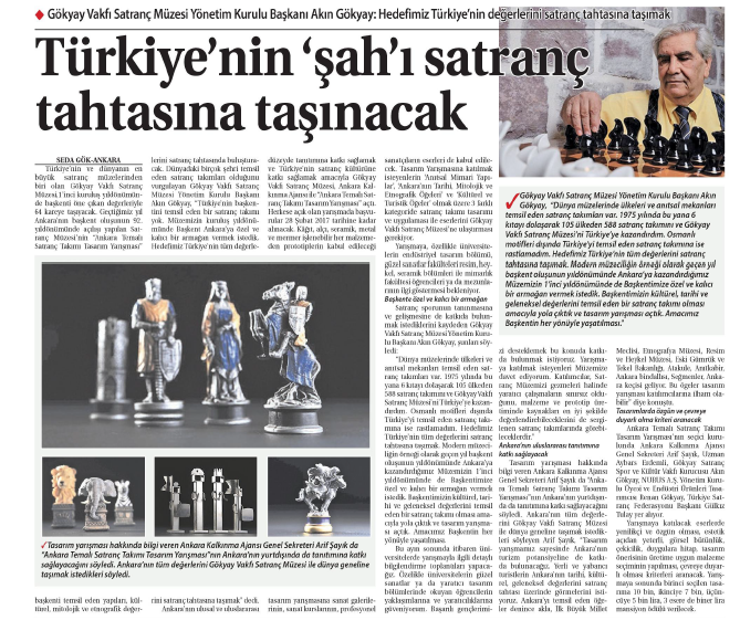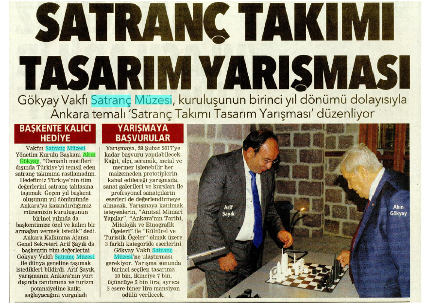 14.10.2018 / Milliyet AnkaraTürkiye'nin Övündüğü Satranç Müzesi