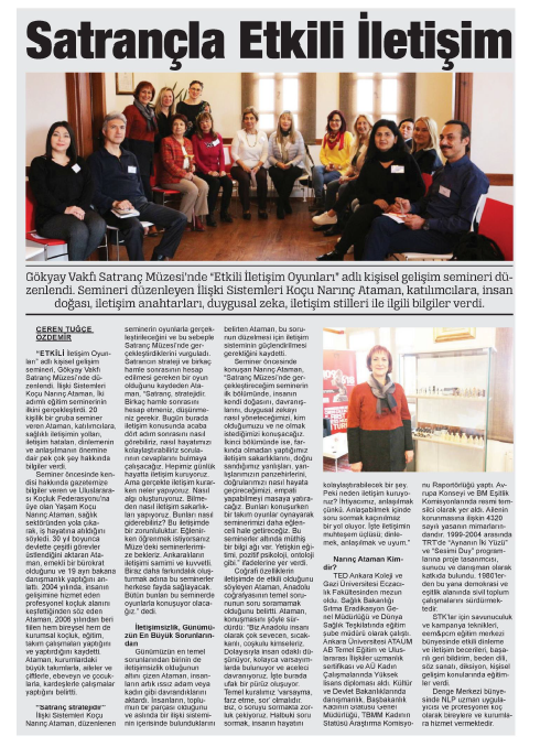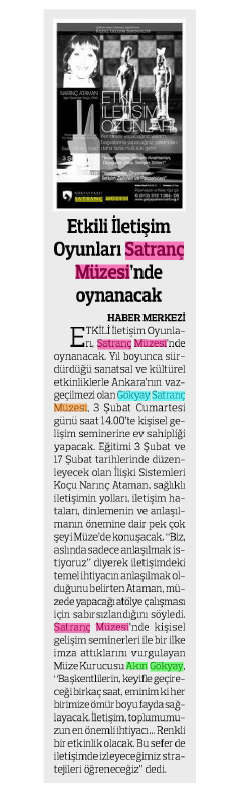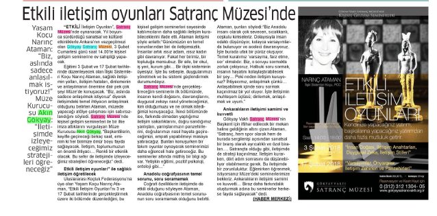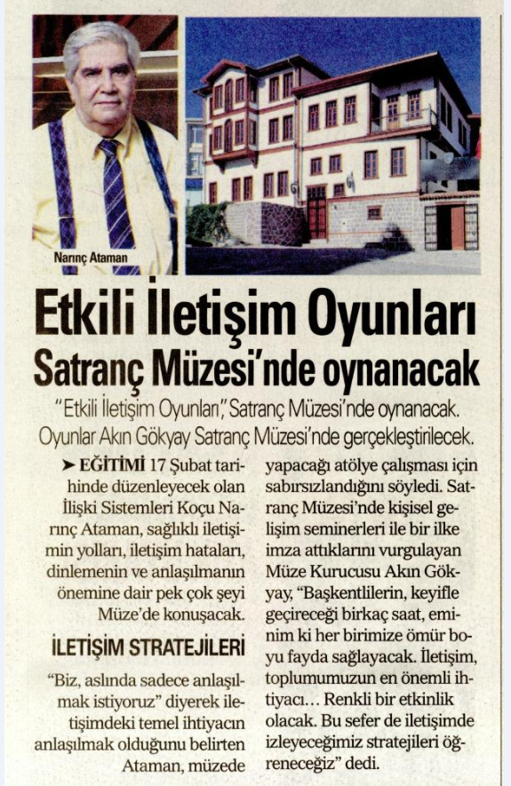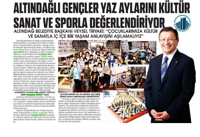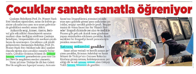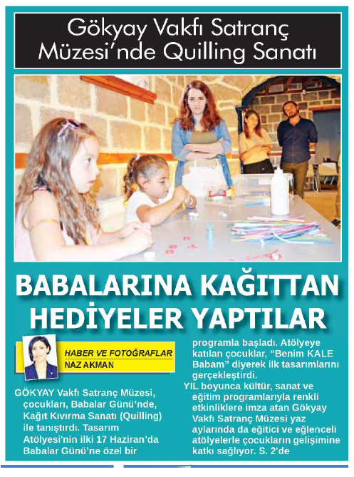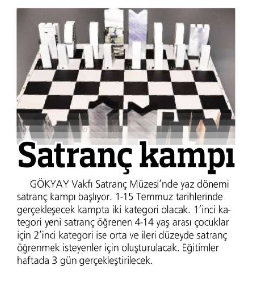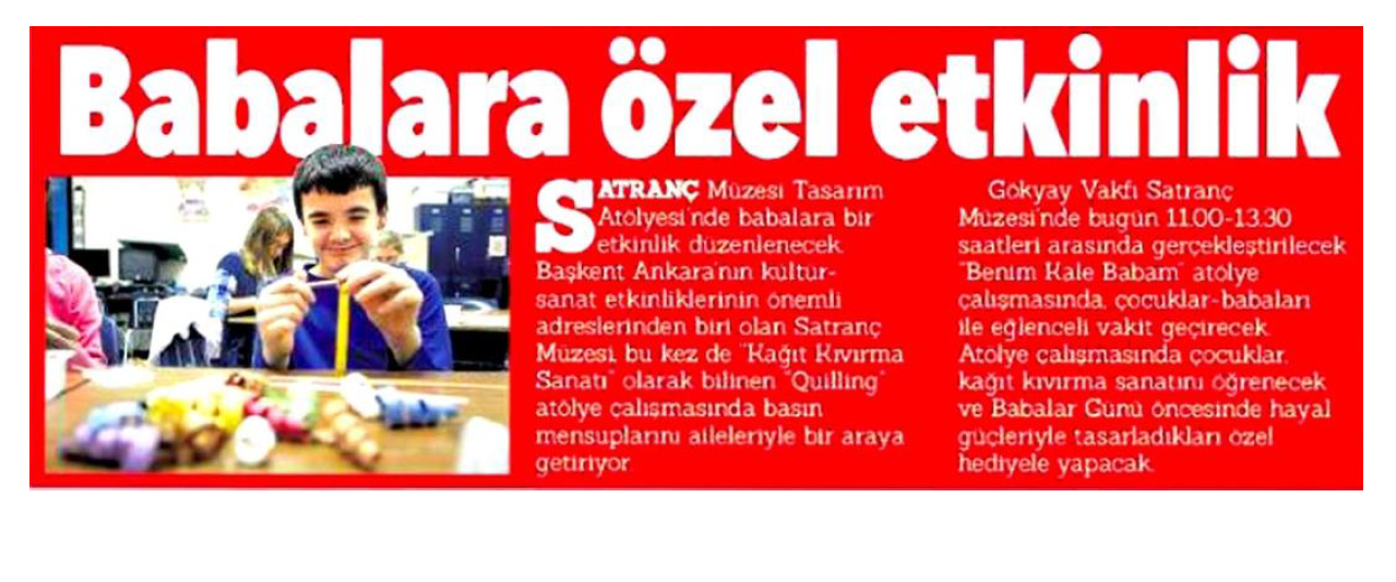 07.06.2018 / Başkent GazetesiSatranç Müzesi'nde Atölye Etkinlikleri Başlıyor
