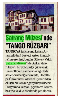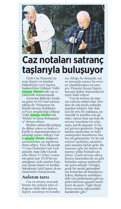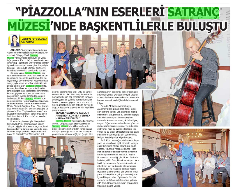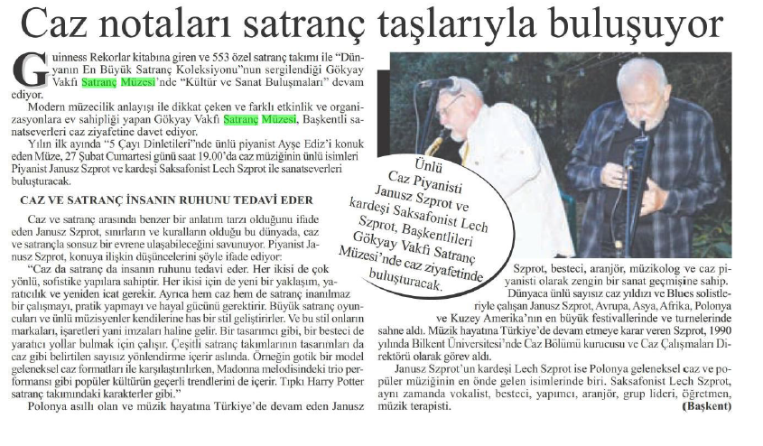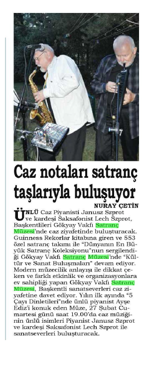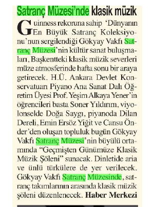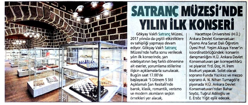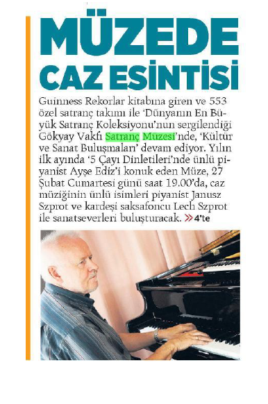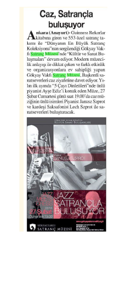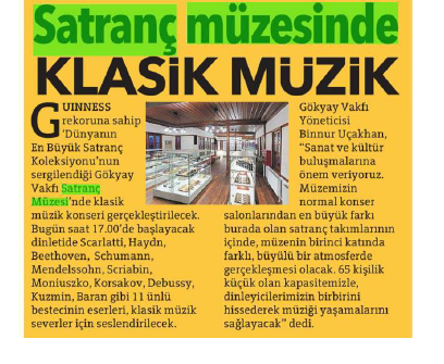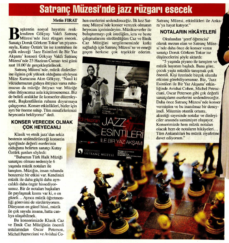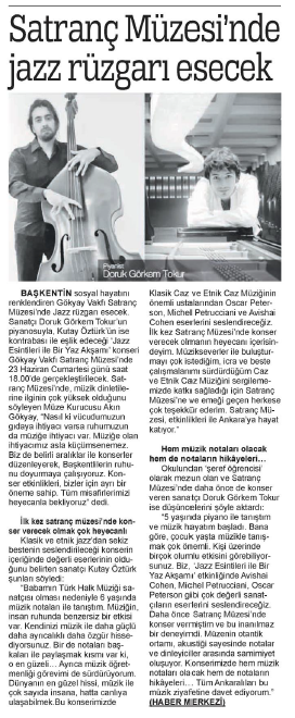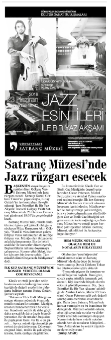 21.06.2018 / Başkent GazetesiSatranç Müzesi'nde Jazz Rüzgarı Esecek