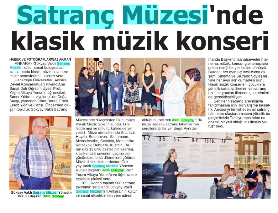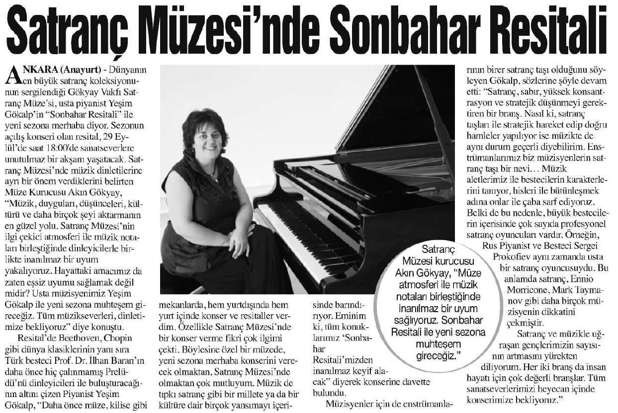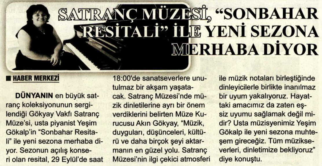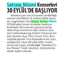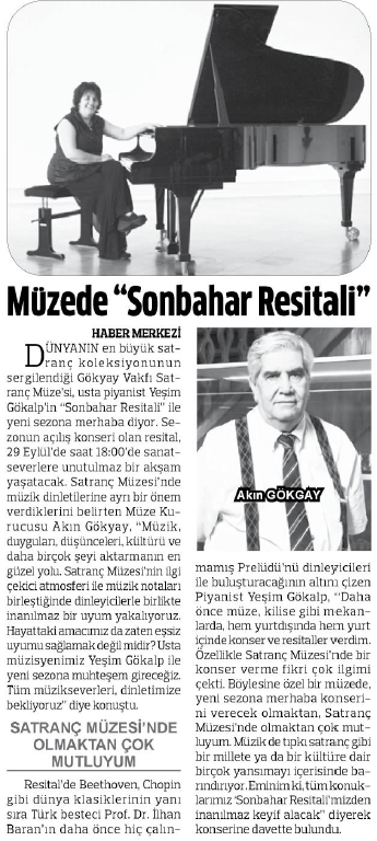 27.09.2018 / Başkent GazetesiSatranç Müzesi'nde ''Sonbahar Resitali''