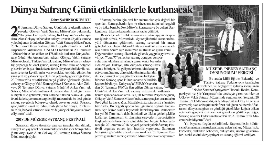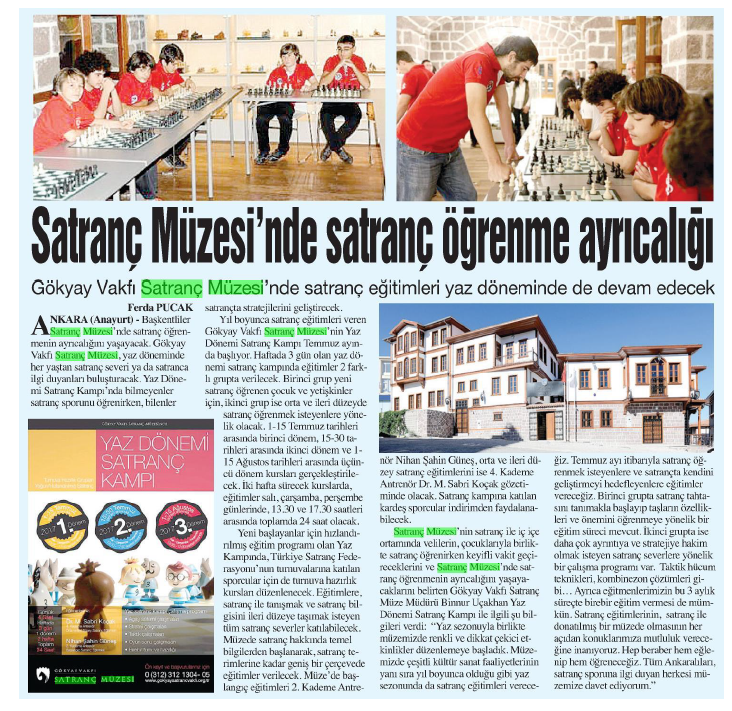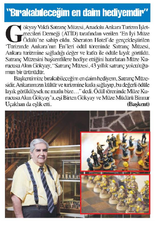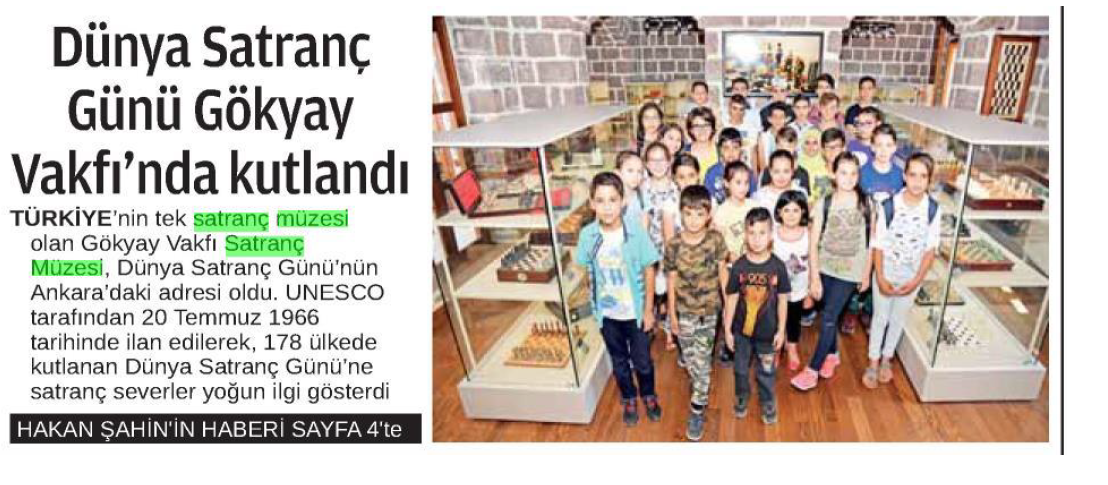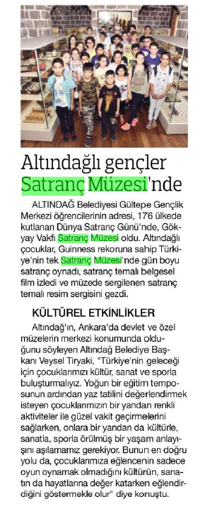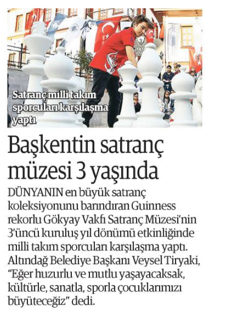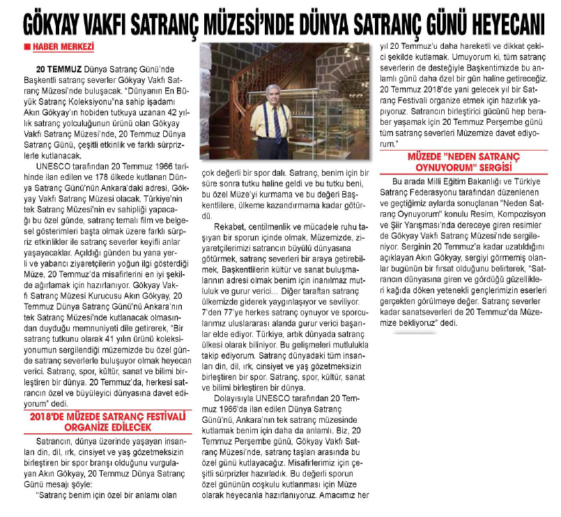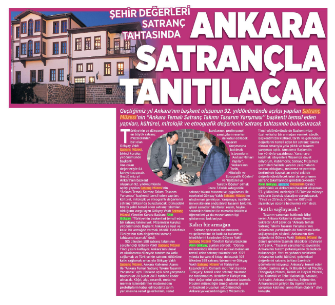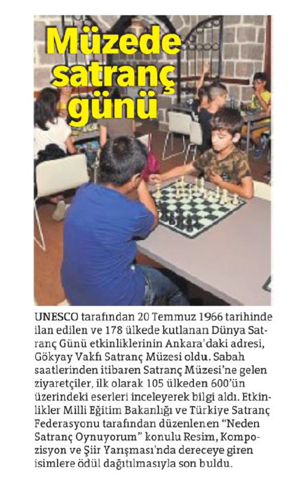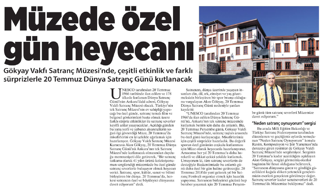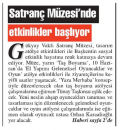 07.06.2018 / Başkent GazetesiSatranç Müzesi'nde Etkinlikler Başlıyor