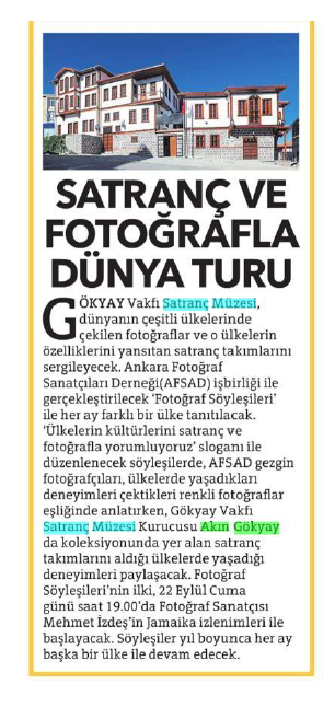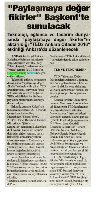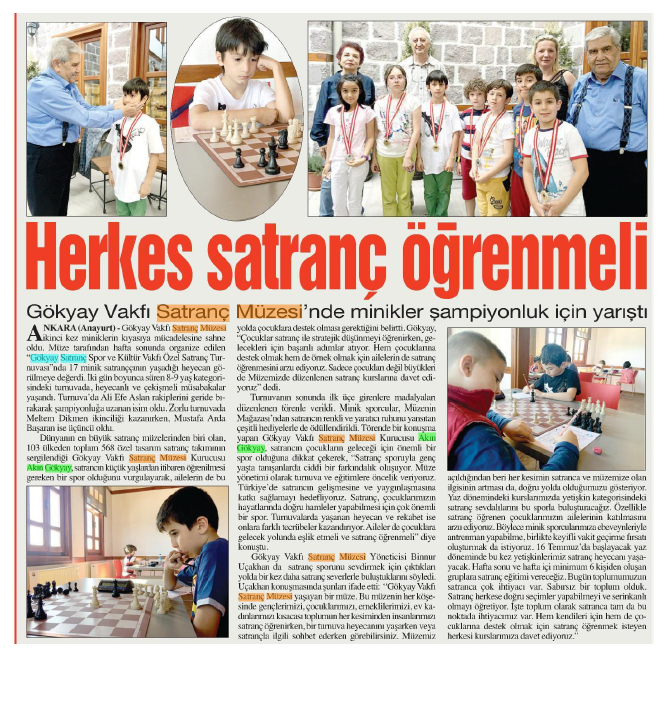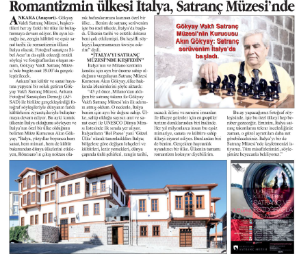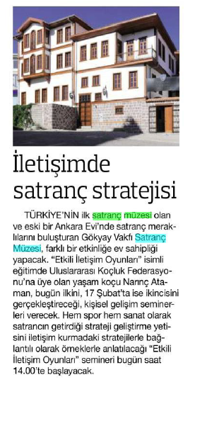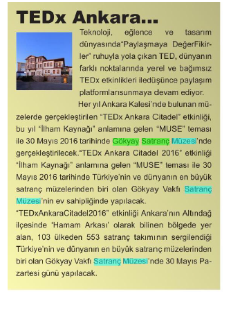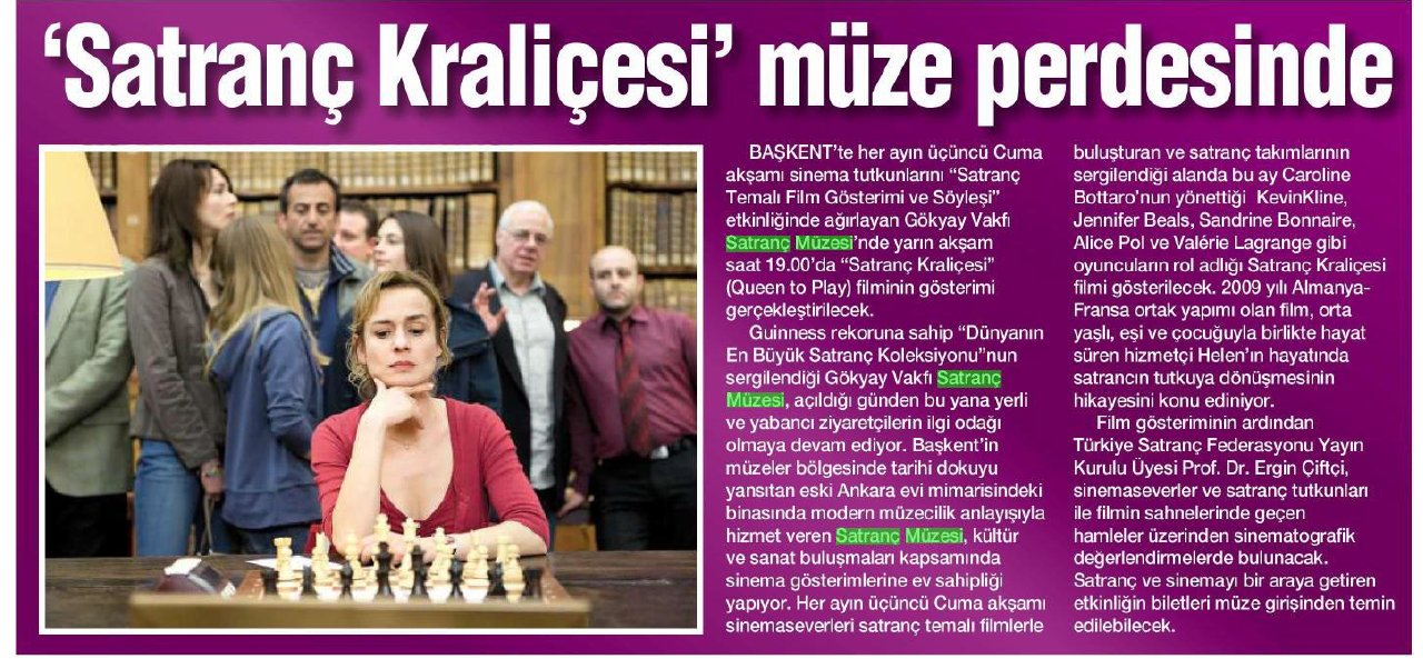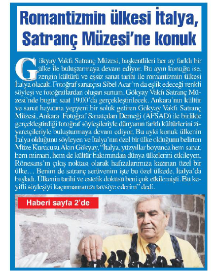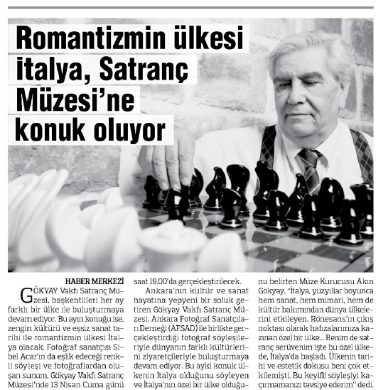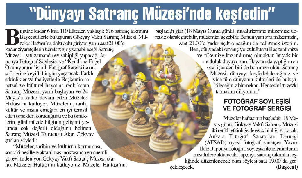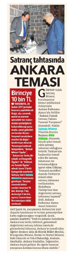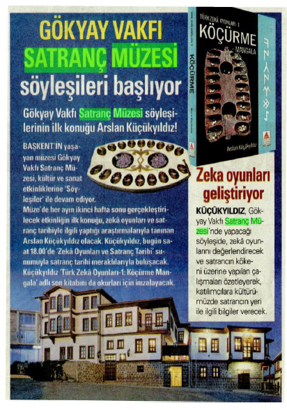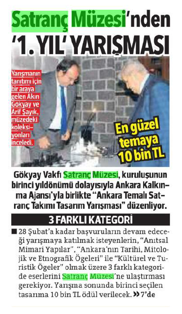 07.06.2018 / Başkent GazetesiSatranç Müzesi'nde Etkinlikler Başlıyor