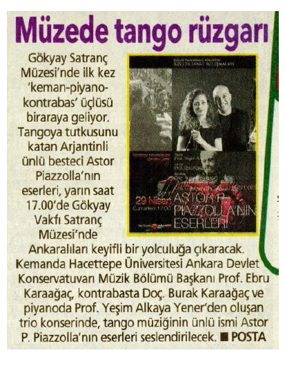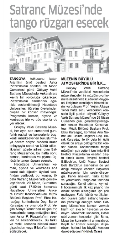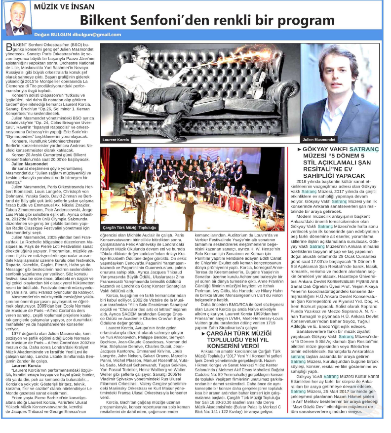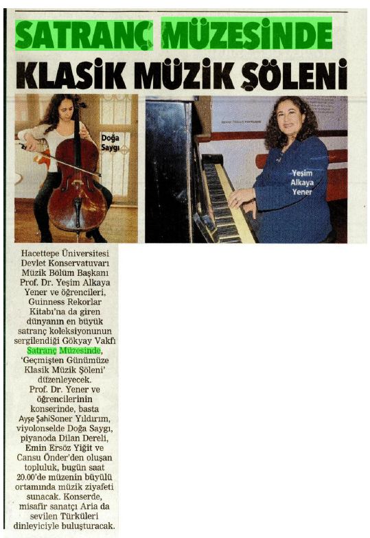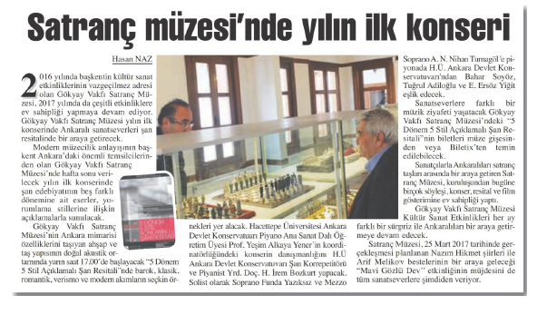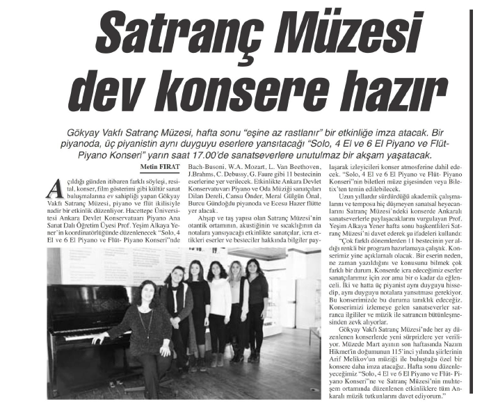 22.02.2019 / Milliyet AnkaraSatranç Taşları Arasında Müzik