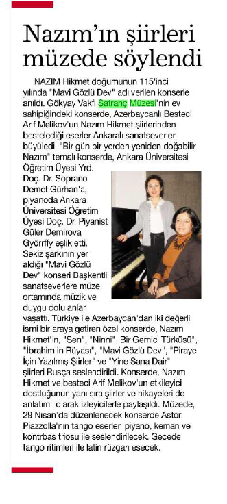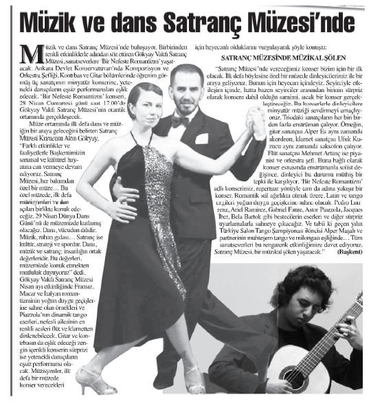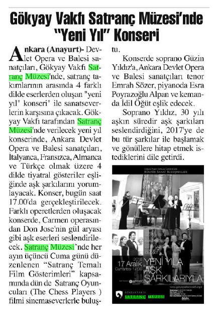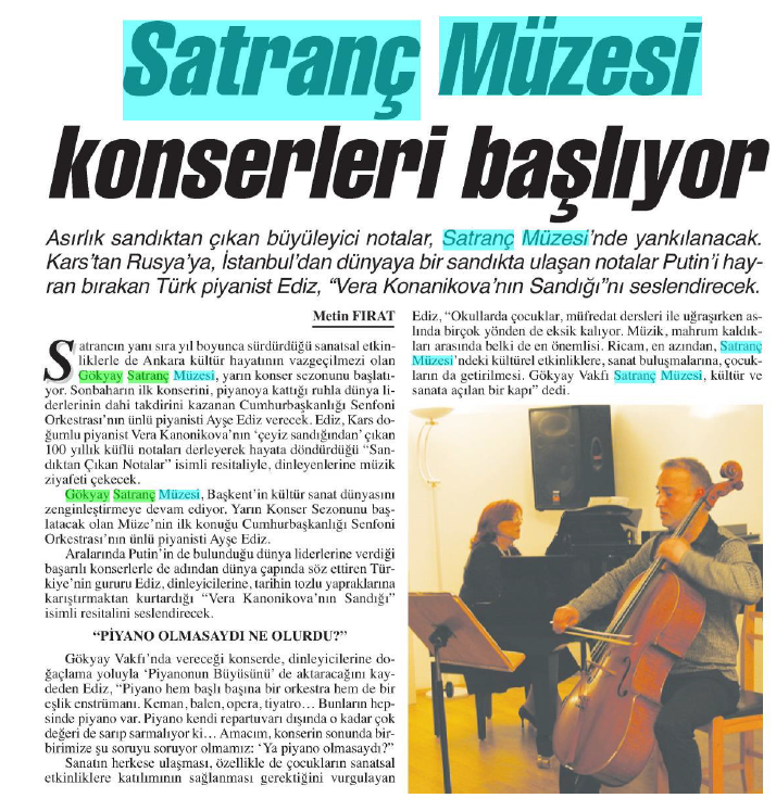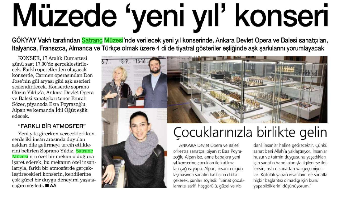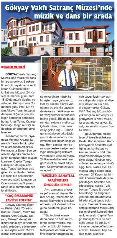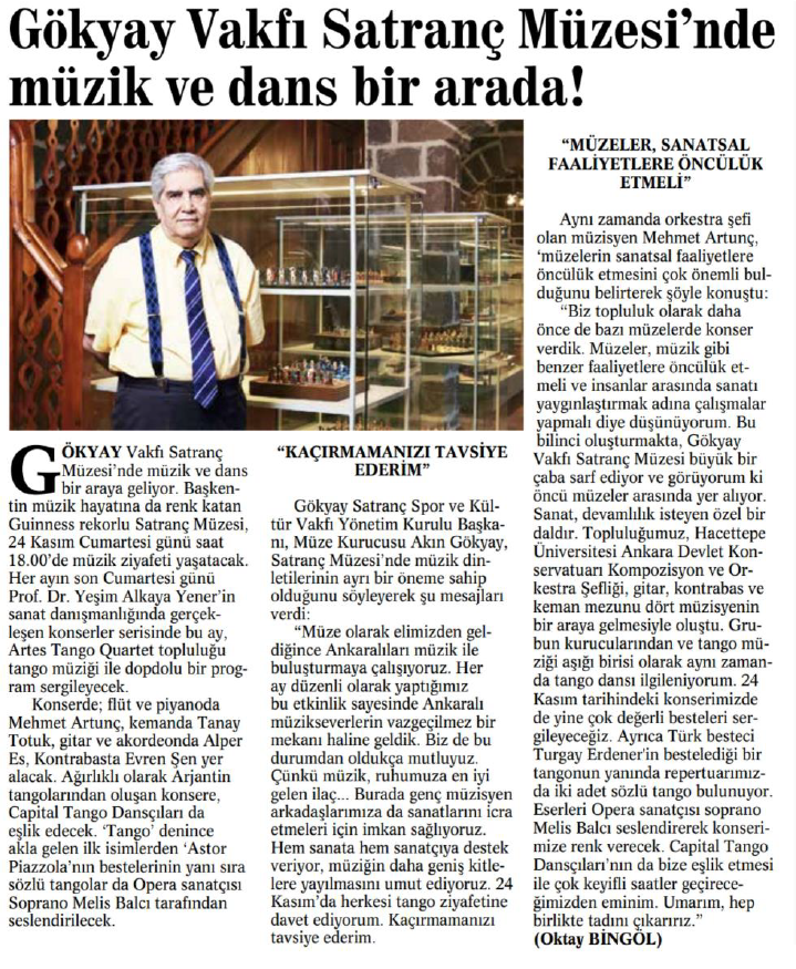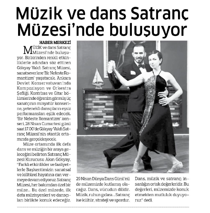 22.11.2018 / Zafer GazetesiGökyay Vakfı Satranç Müzesi'nde Müzik ve Dans Bir Arada