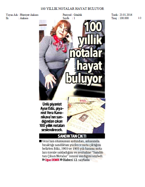 22.01.2016 / Hürriyet Ankara100 Yıllık Notalar Hayat Buluyor