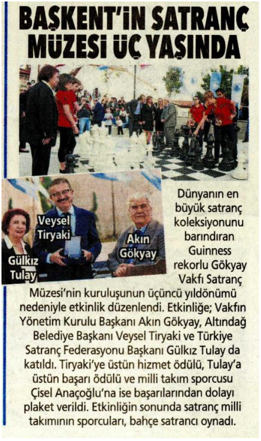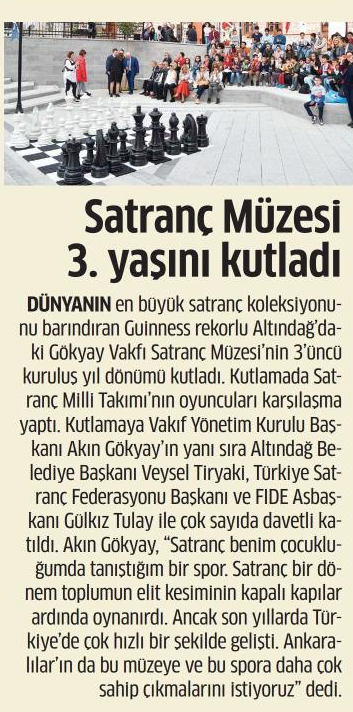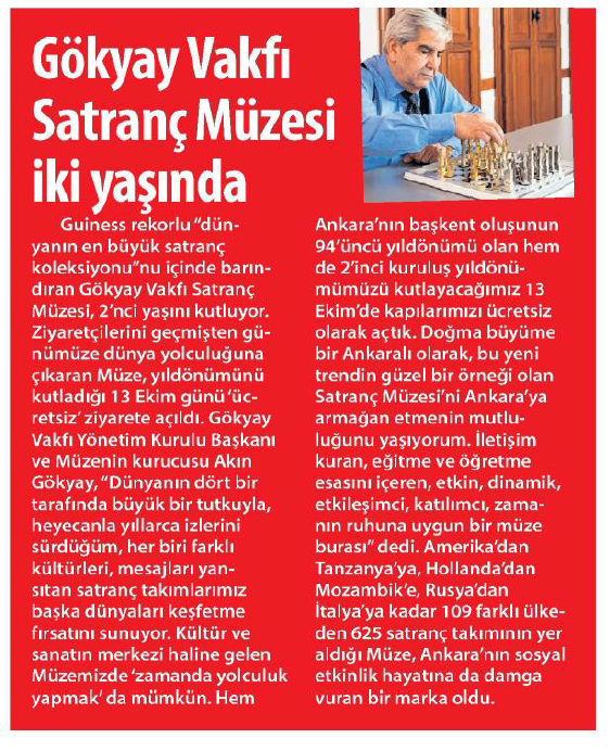 14.10.2018 / Başkent GazetesiBaşkent'in Satranç Müzesi 3 Yaşında