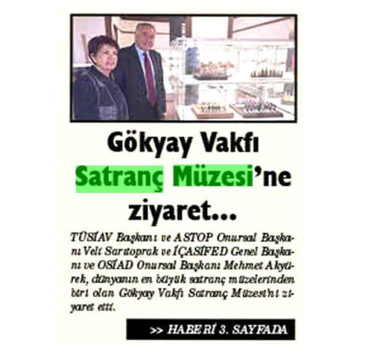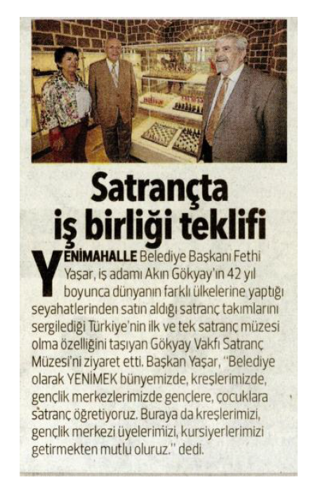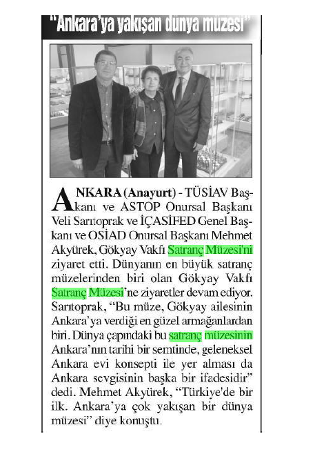 20.12.2015 / Zafer GazetesiGökyay Vakfı Satranç Müzesine Ziyaret