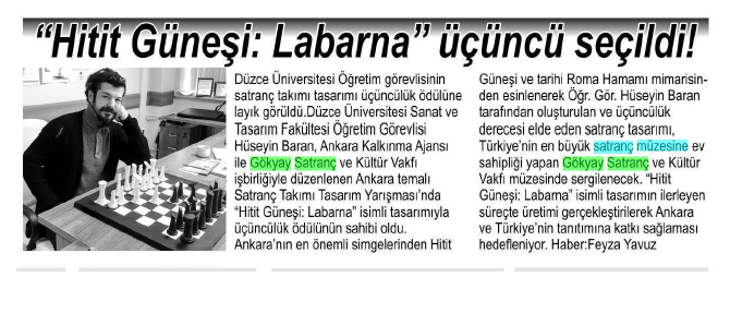 15.11.2018 / Başkent GazetesiÖmürlük Tutkular Satranç Müzesi'nde