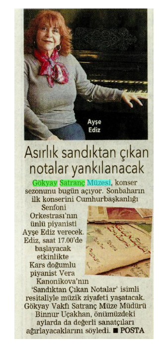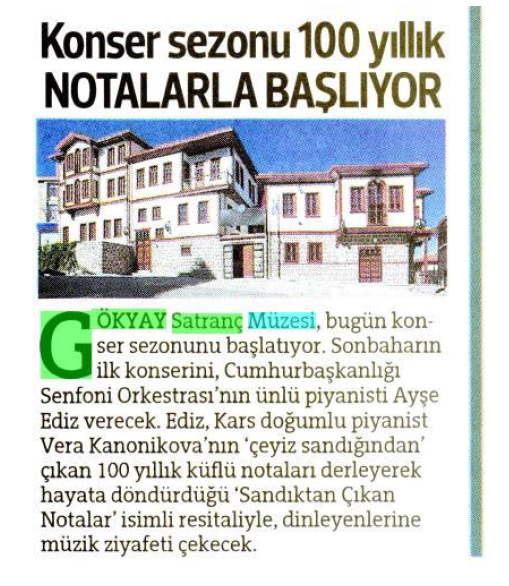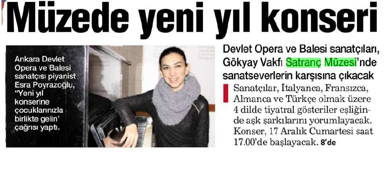 28.09.2018 / Posta AnkaraSatranç Müzesi Yeni Sezona Resitalle Başlangıç Yapıyor