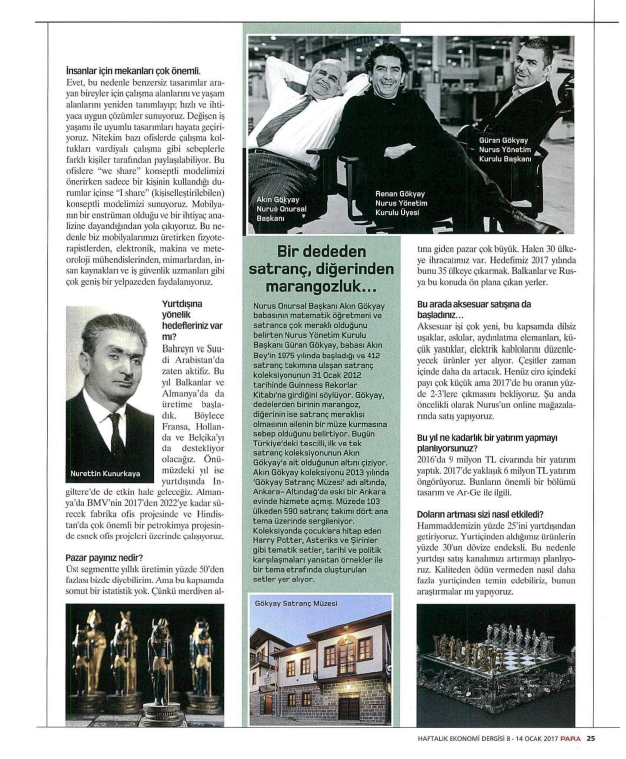 Nurus Yönetim Kurulu Başkanı Akın Gökyay’ın Guinness Rekorlar Kitabı’na giren satranç takımı koleksiyonu sergisi açıldı. Nurus Levent Mağazası’nda...