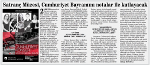 25.10.2018 / Güçlü AnadoluSatranç Müzesi, Cumhuriyet Bayramını Notalar ile Kutlayacak