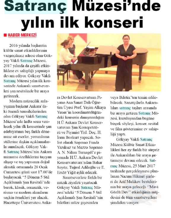 25.01.2016 / Başkent GazetesiNotalar Sandıktan Çıkıyor