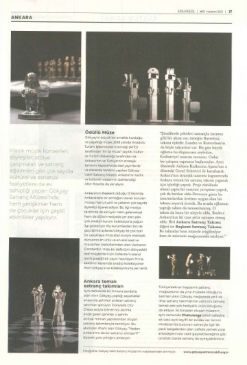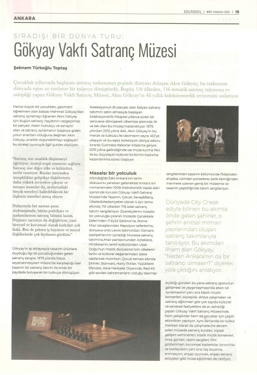Geri Dön SIRADIŞI BİR DÜNYA TURU: GÖKYAY VAKFI SATRANÇ MÜZESİ Solfasol gazetesinde müzemiz hakkında keyifli bir yazı yayınlandı.