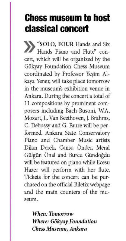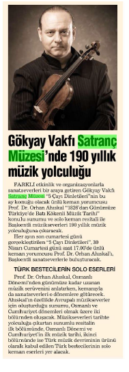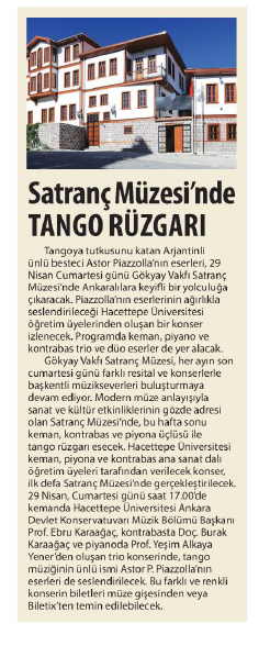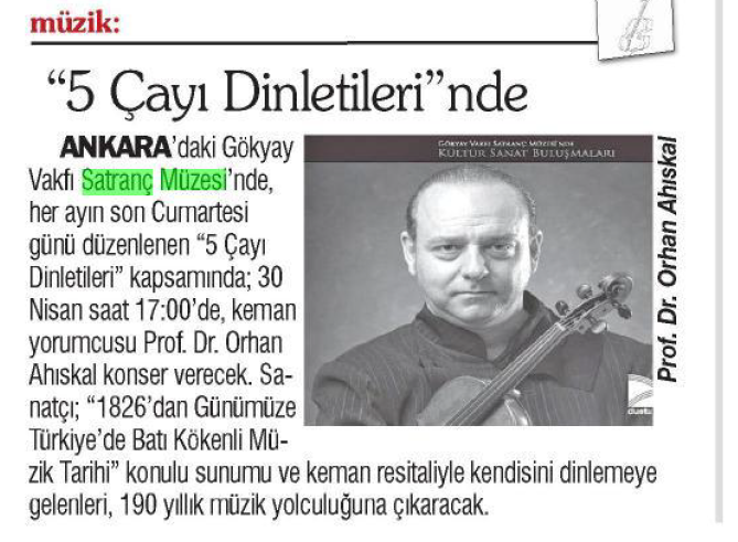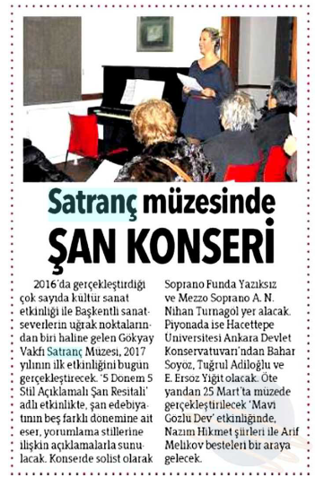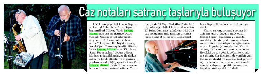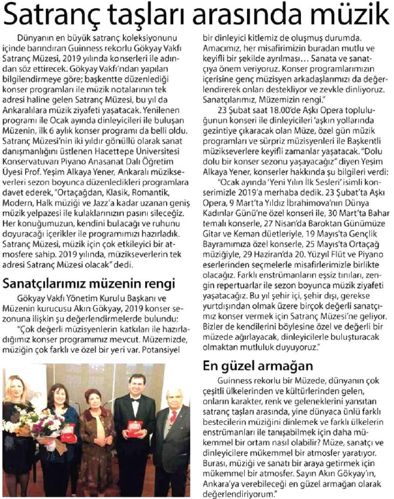 22.02.2019 / Milliyet AnkaraSatranç Taşları Arasında Müzik