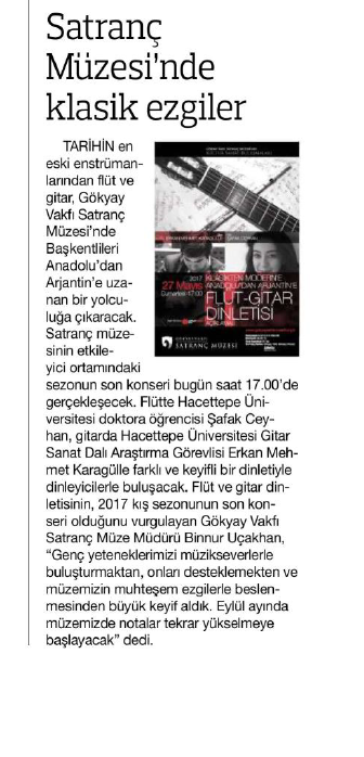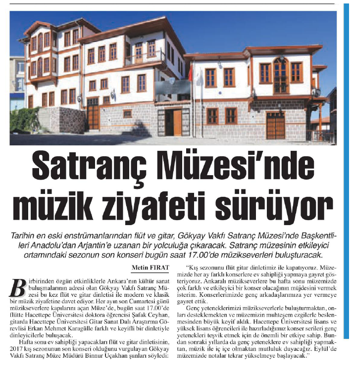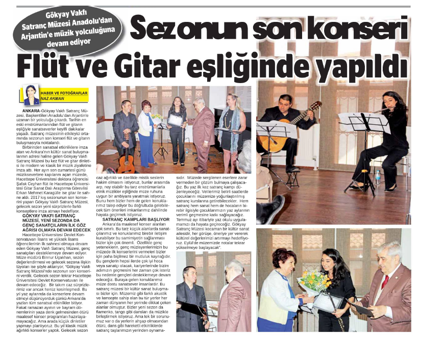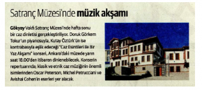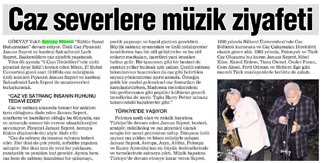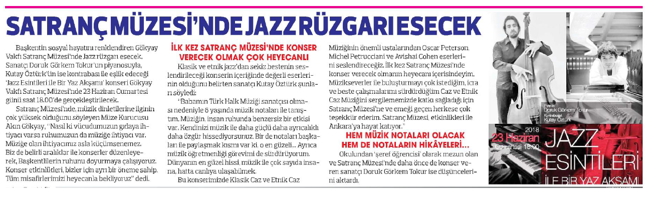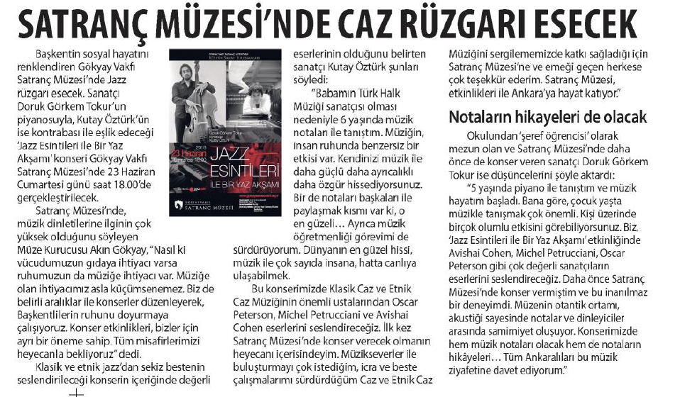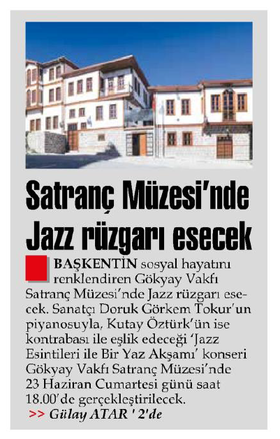 21.06.2018 / Başkent GazetesiSatranç Müzesi'nde Jazz Rüzgarı Esecek