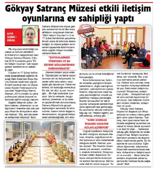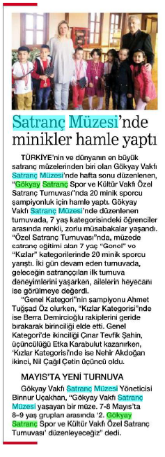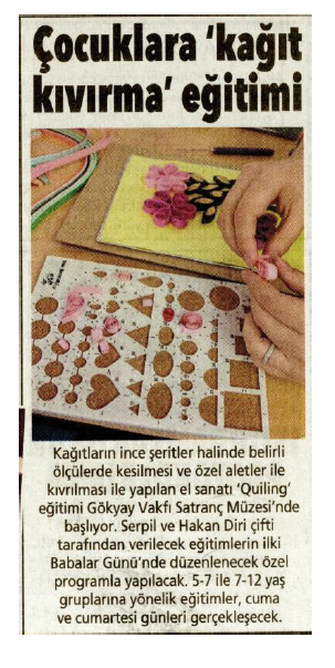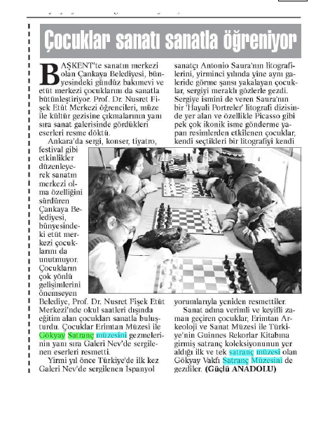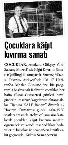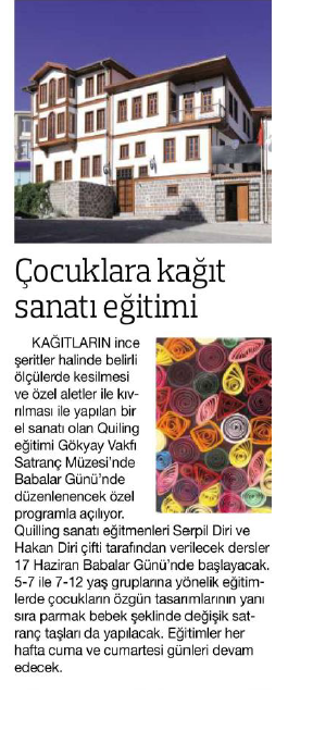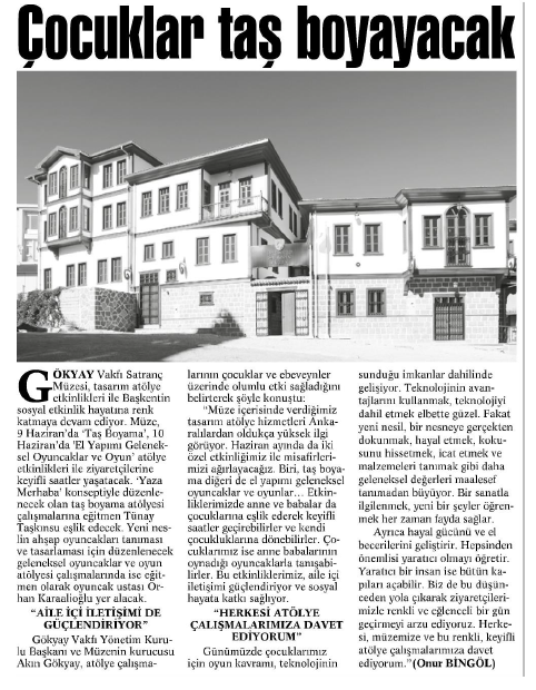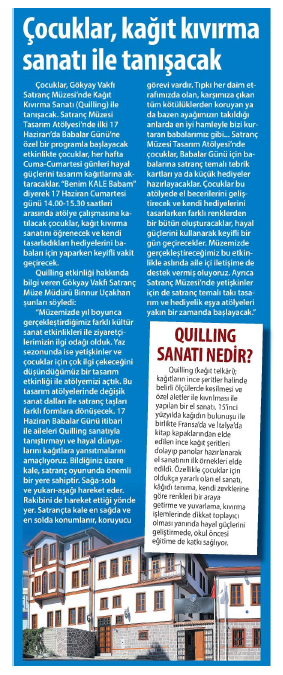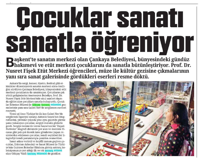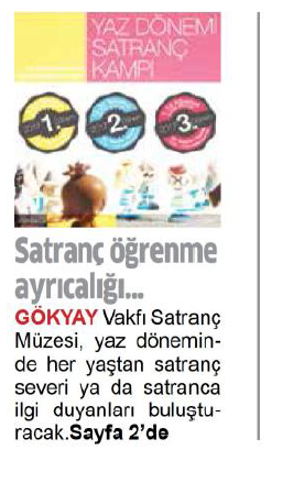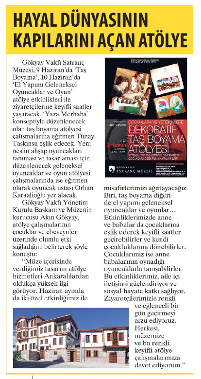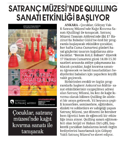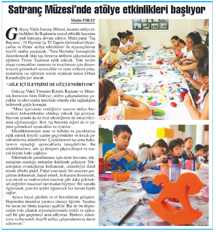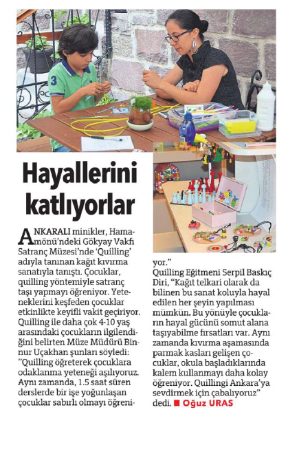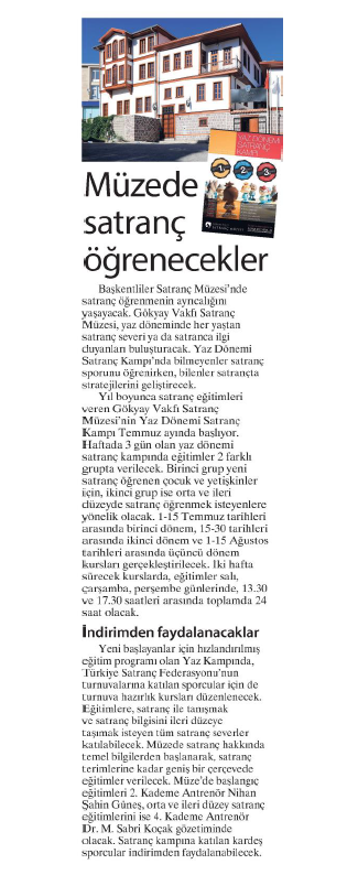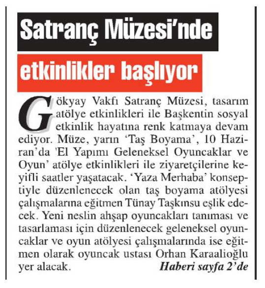 07.06.2018 / Başkent GazetesiSatranç Müzesi'nde Atölye Etkinlikleri Başlıyor