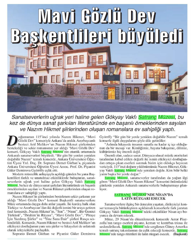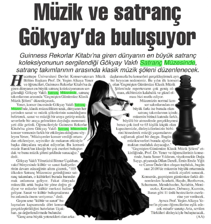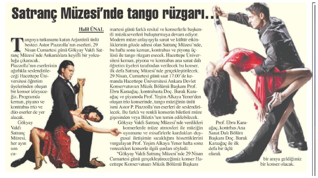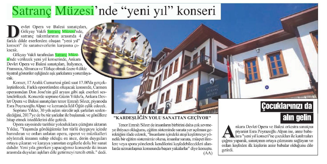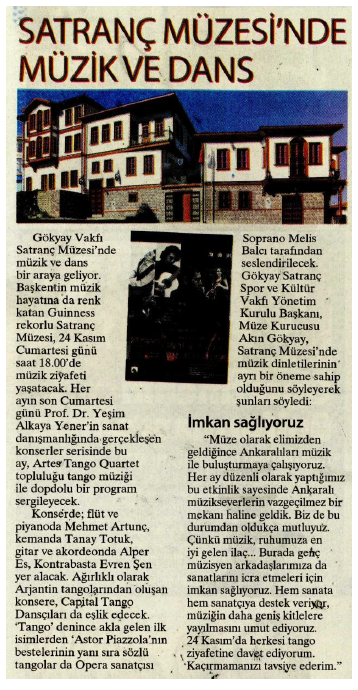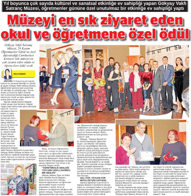 22.11.2018 / Zafer GazetesiGökyay Vakfı Satranç Müzesi'nde Müzik ve Dans Bir Arada