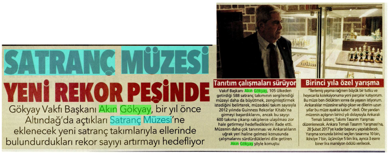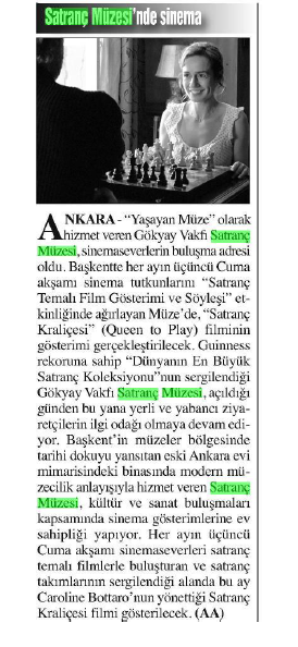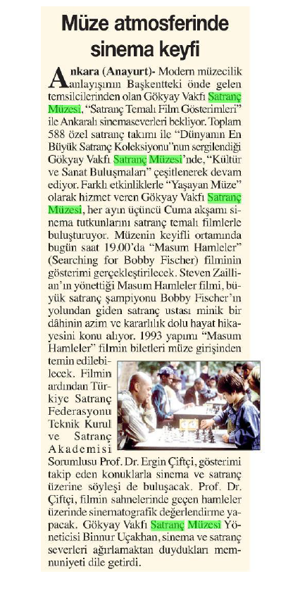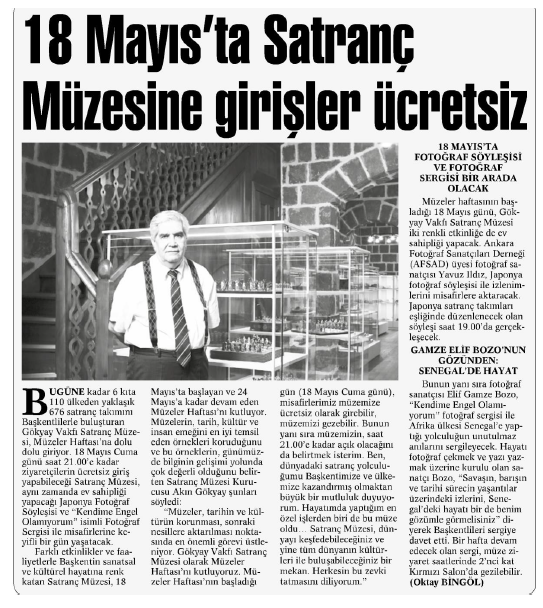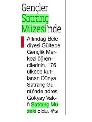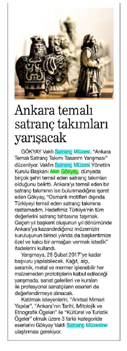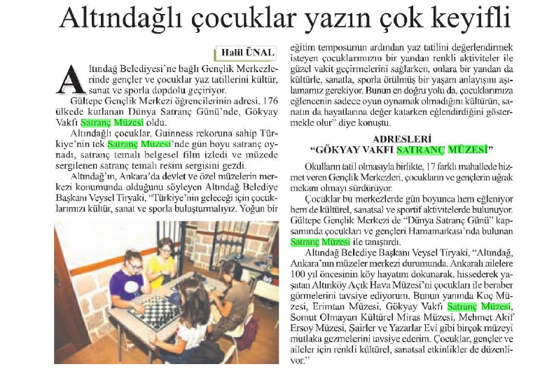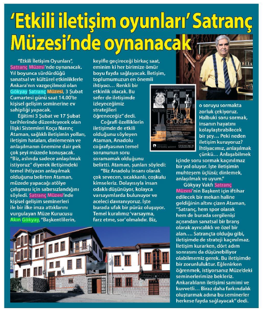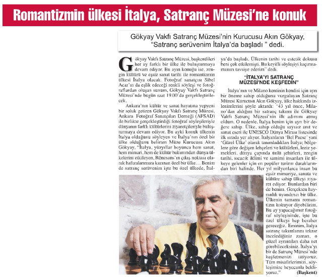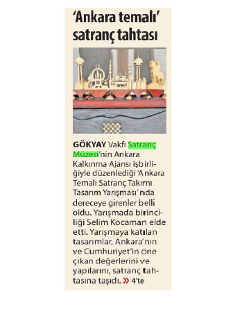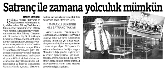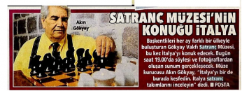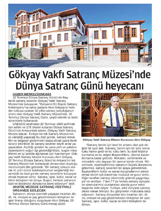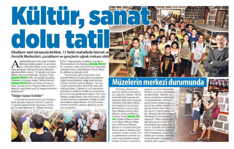 07.06.2018 / Başkent GazetesiSatranç Müzesi'nde Etkinlikler Başlıyor
