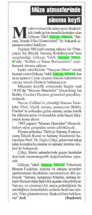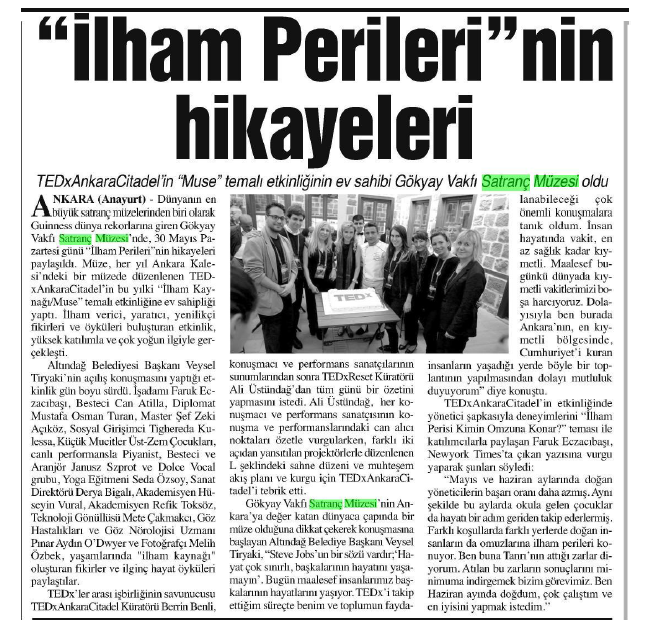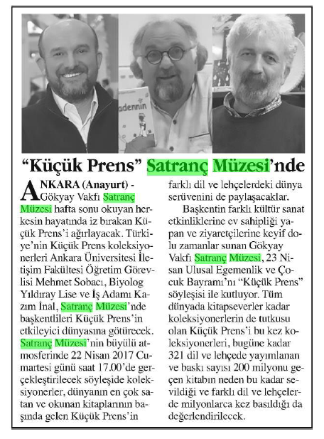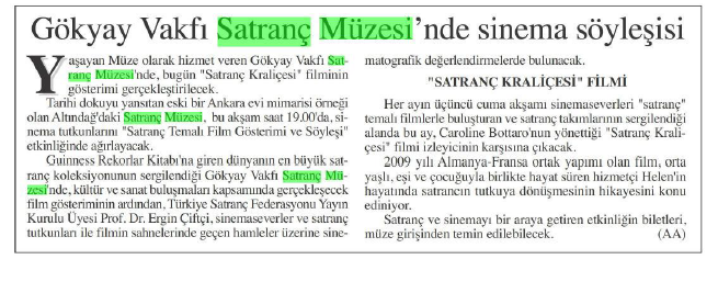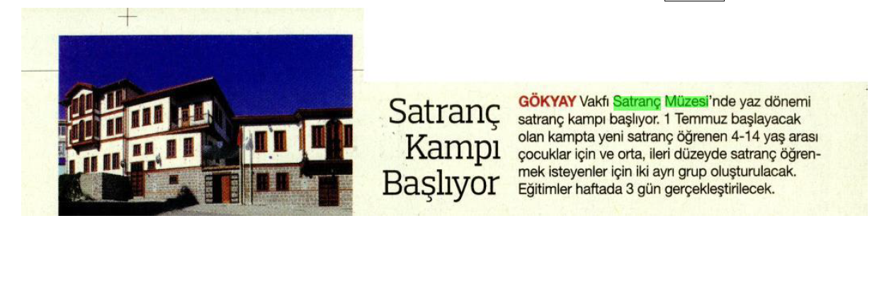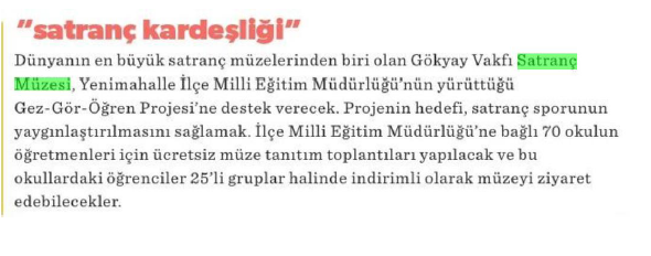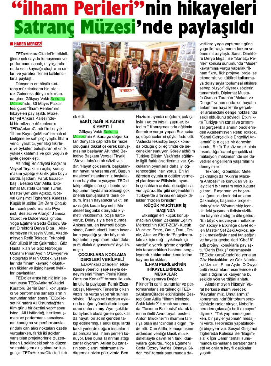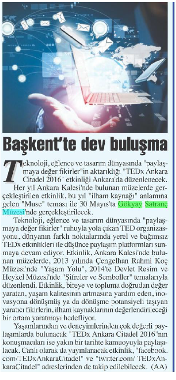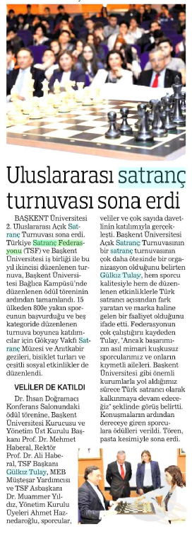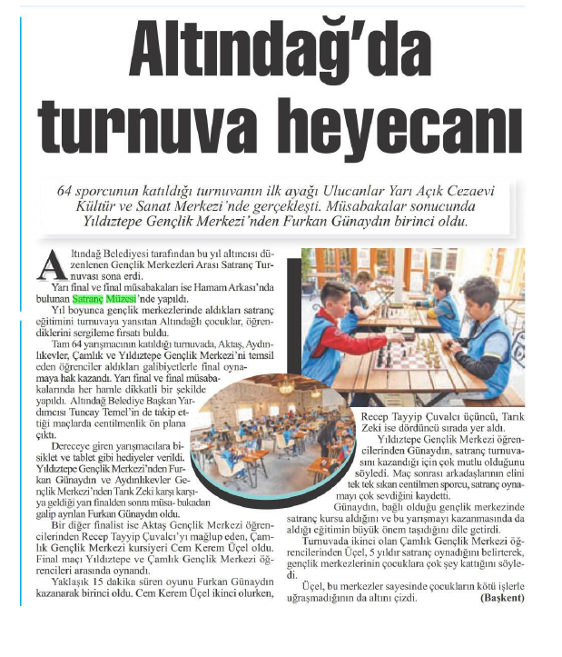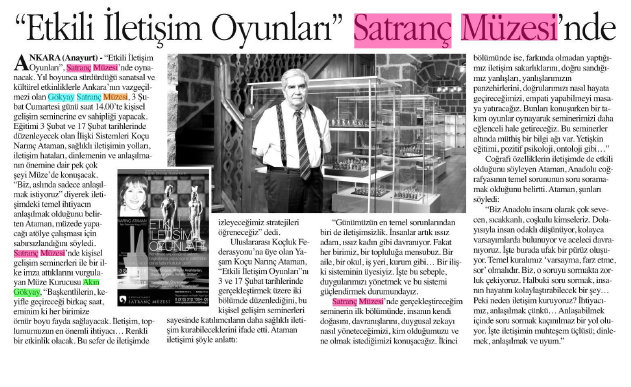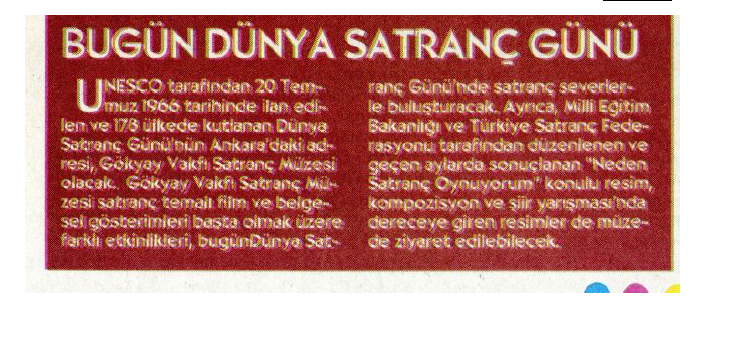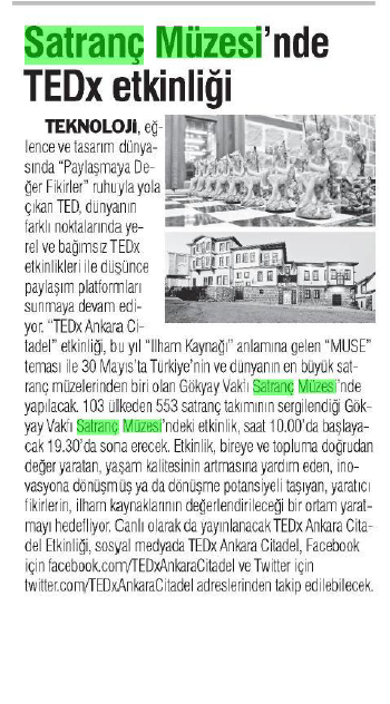 07.06.2018 / Başkent GazetesiSatranç Müzesi'nde Etkinlikler Başlıyor