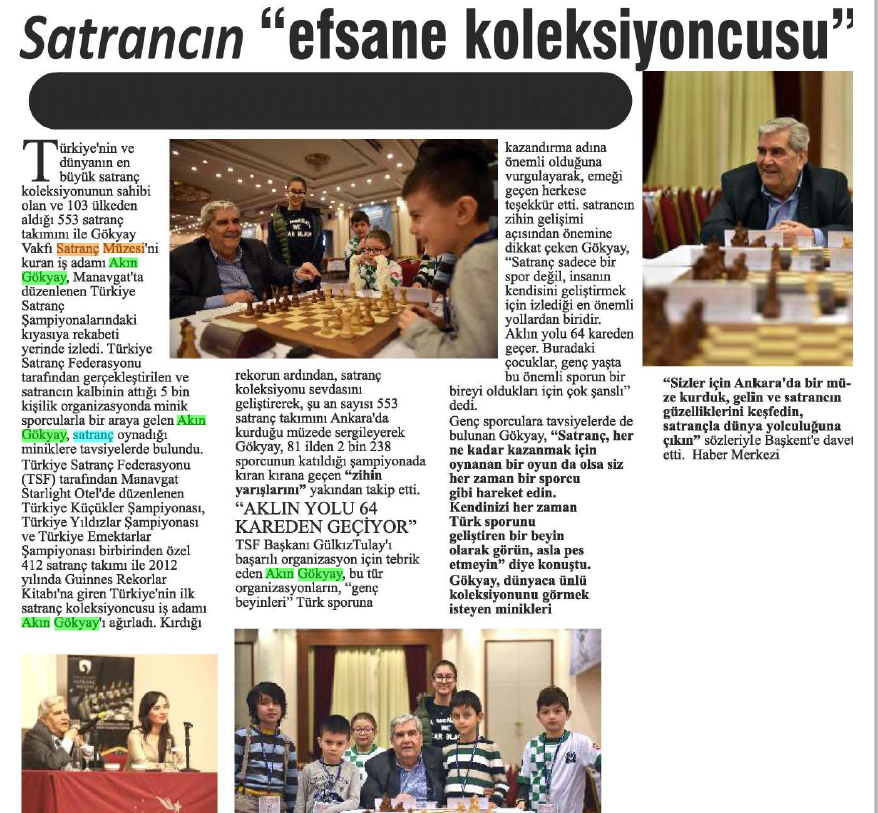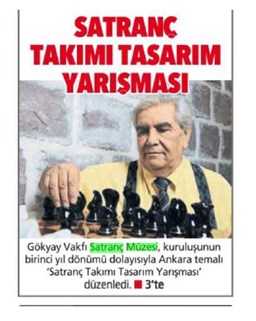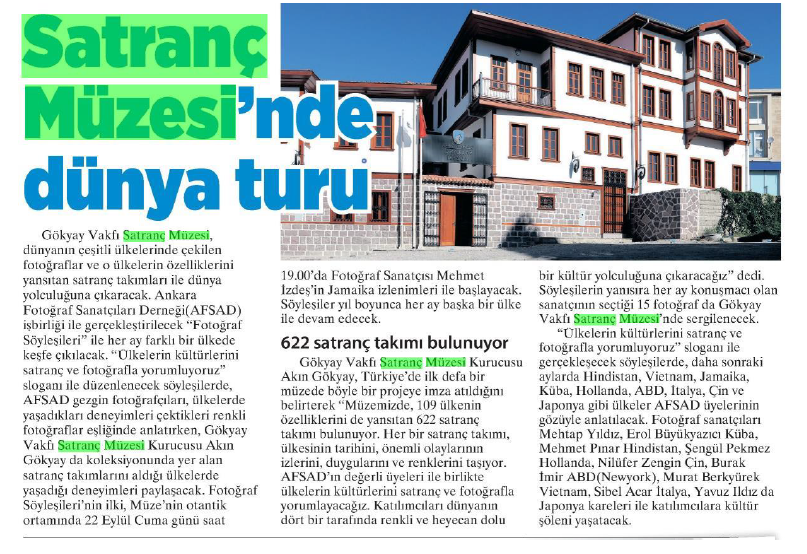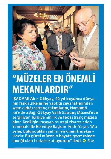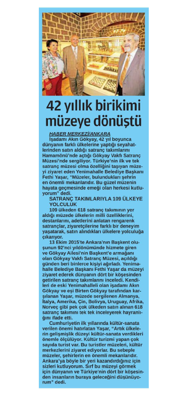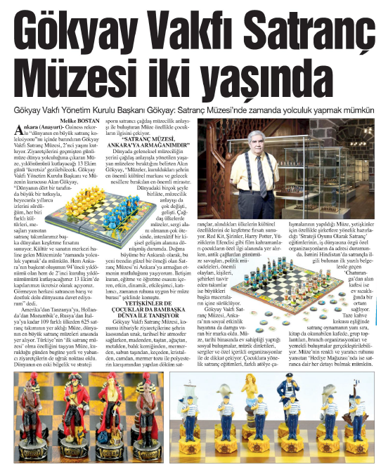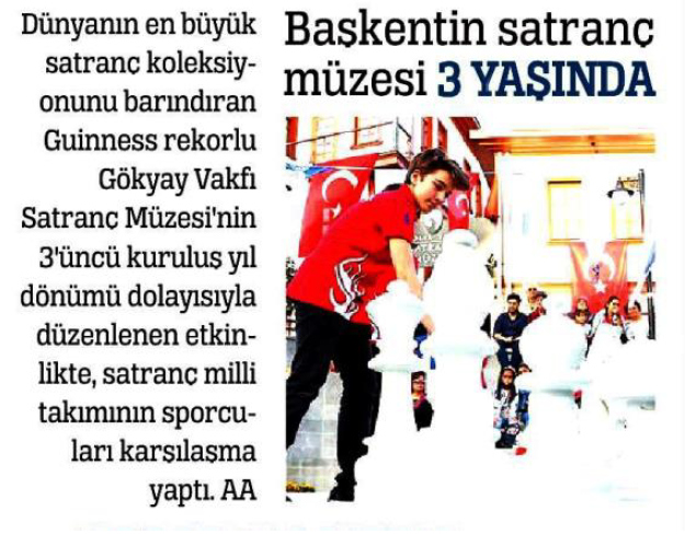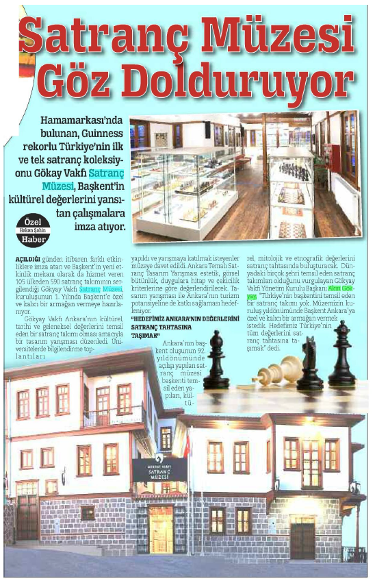 14.10.2018 / Milliyet AnkaraTürkiye'nin Övündüğü Satranç Müzesi