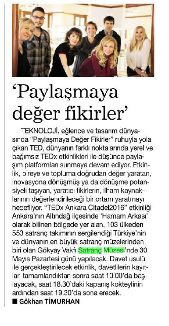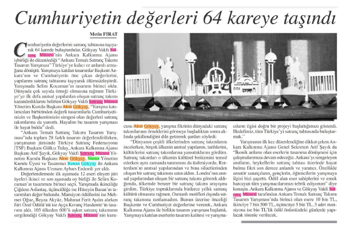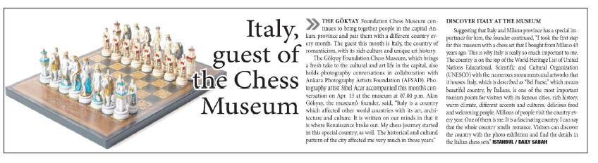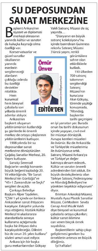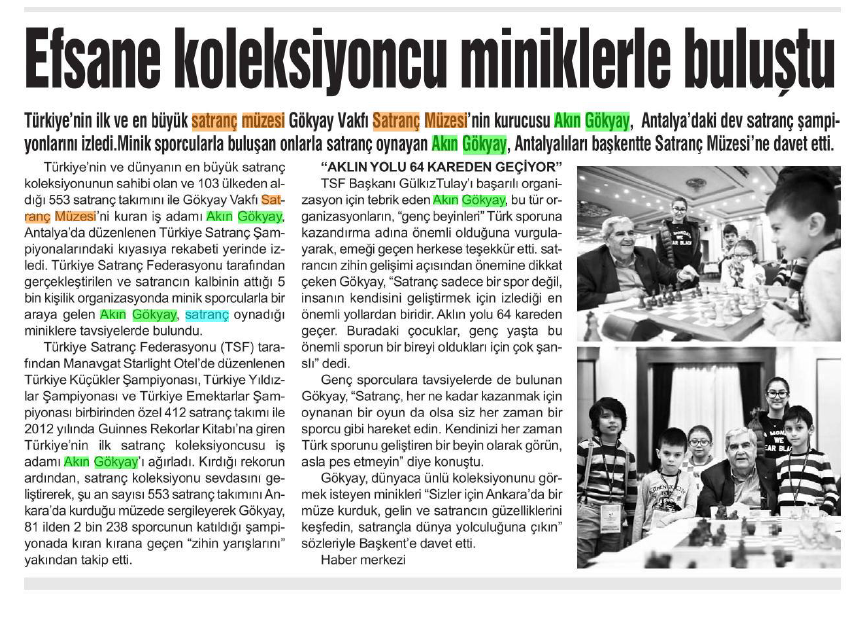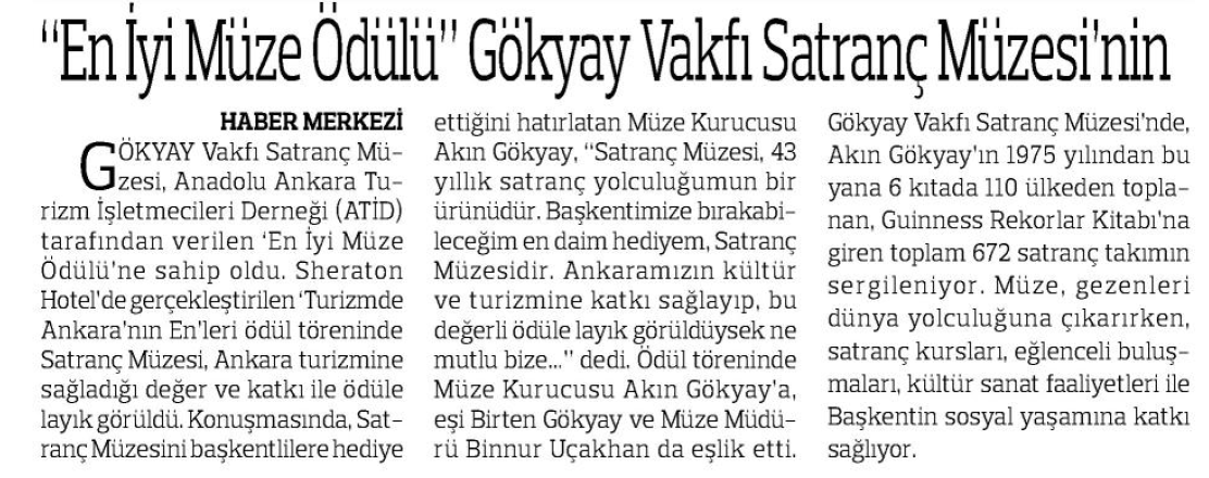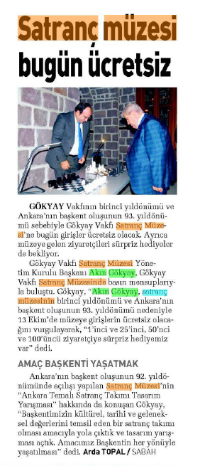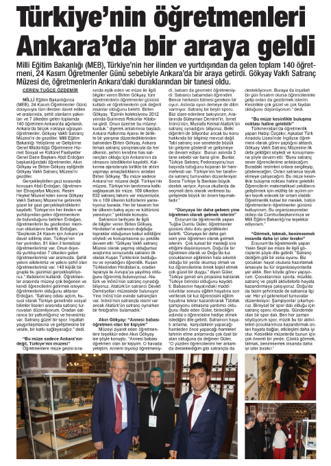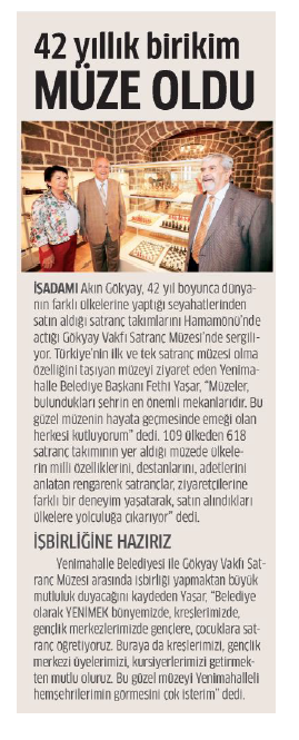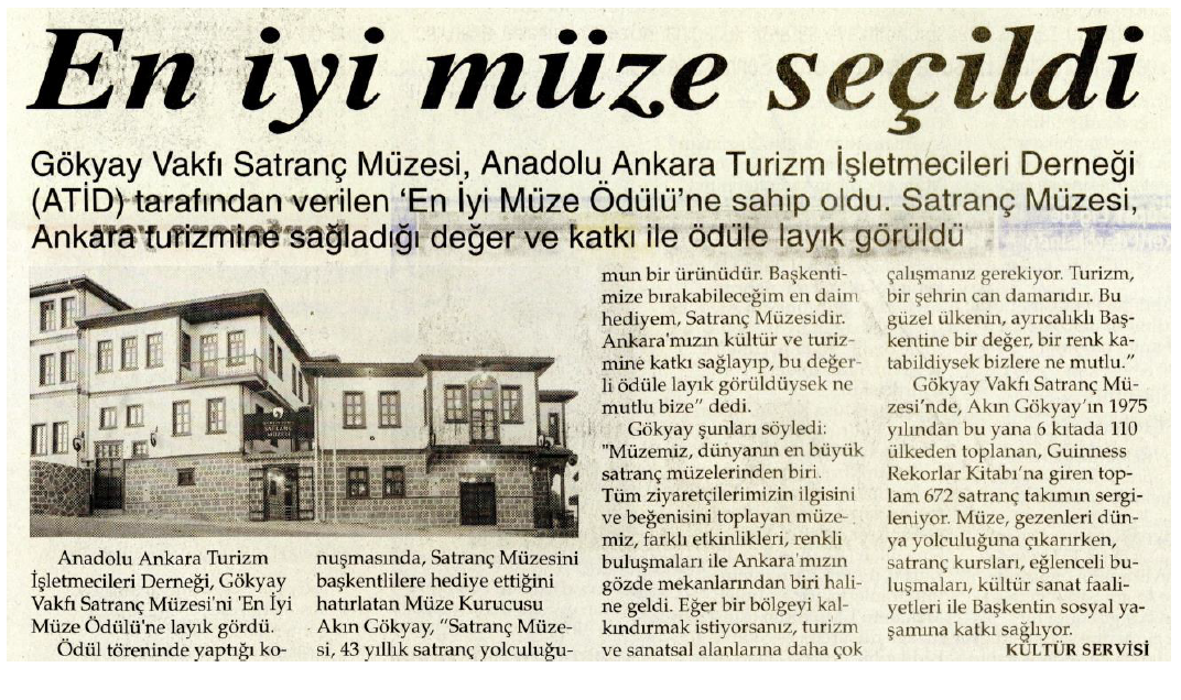 14.10.2018 / Milliyet AnkaraTürkiye'nin Övündüğü Satranç Müzesi