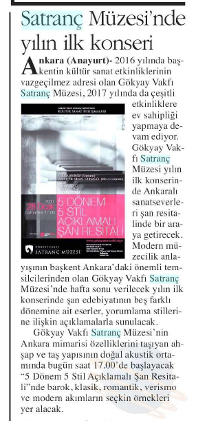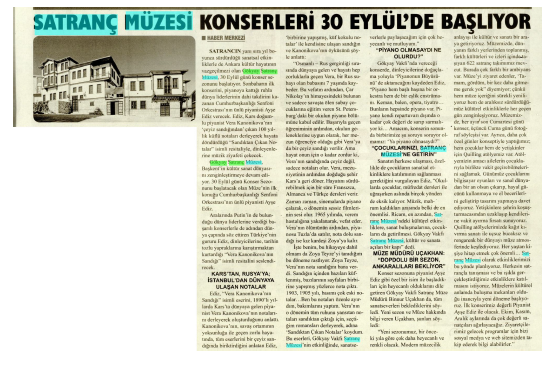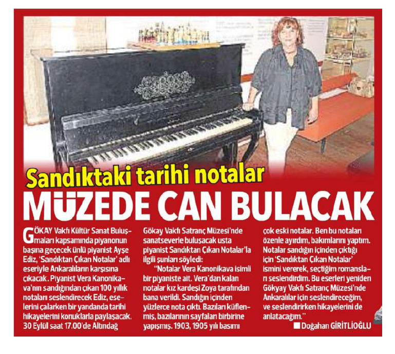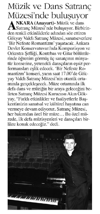 28.09.2018 / Posta AnkaraSatranç Müzesi Yeni Sezona Resitalle Başlangıç Yapıyor