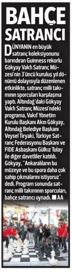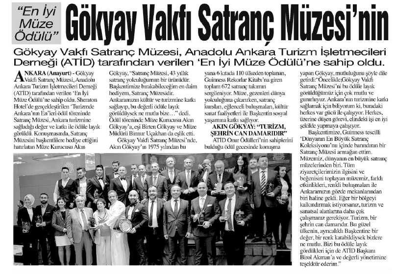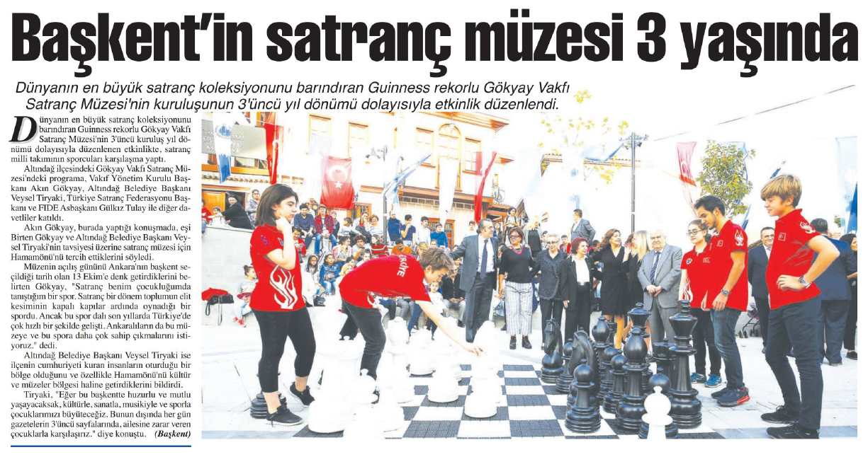 14.10.2018 / Başkent GazetesiBaşkent'in Satranç Müzesi 3 Yaşında