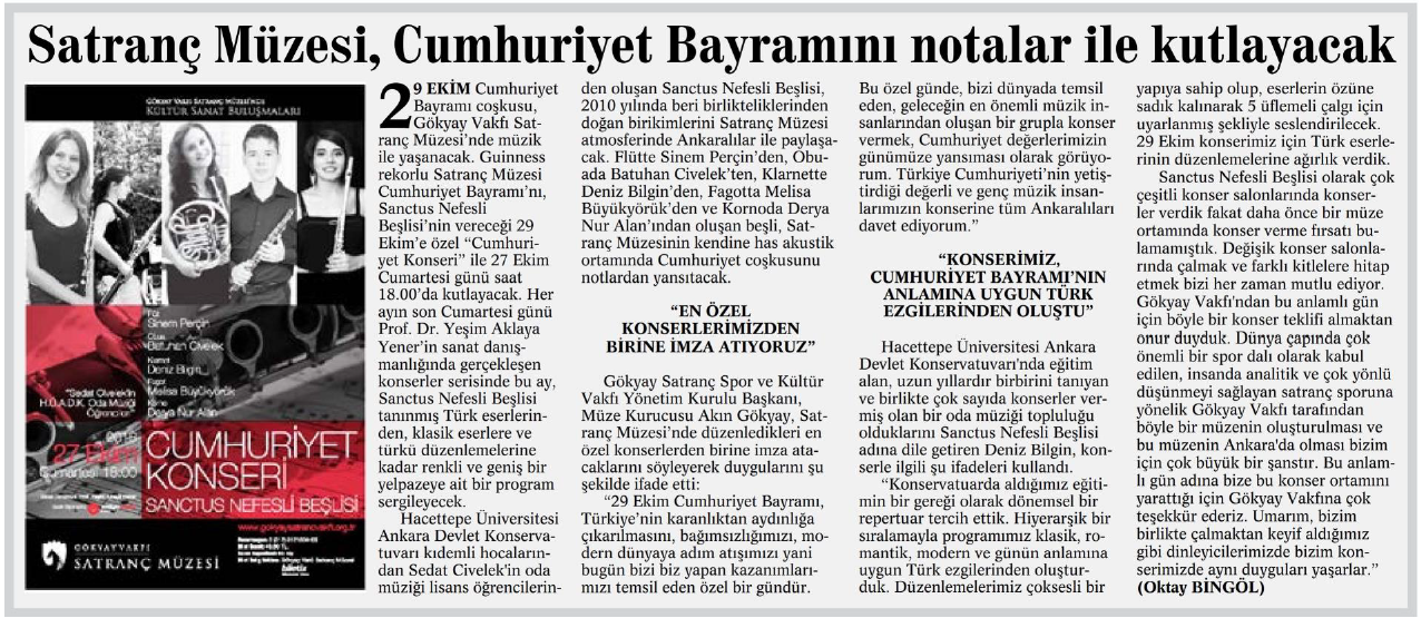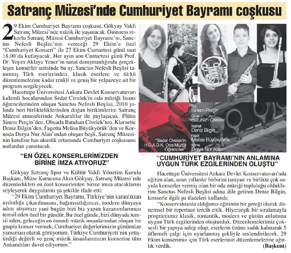 25.10.2018 / Başkent GazetesiSatranç Müzesi'nde Cumhuriyet Bayramı Çoşkusu