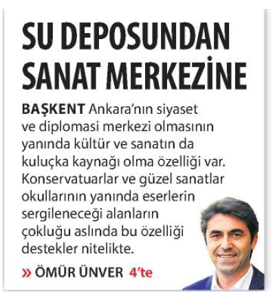 14.10.2018 / Milliyet AnkaraSu Deposundan Sanat Merkezine