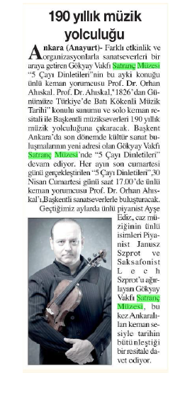 22.01.2016 / Hürriyet Ankara100 Yıllık Notalar Hayat Buluyor