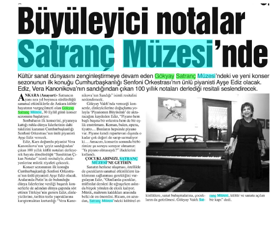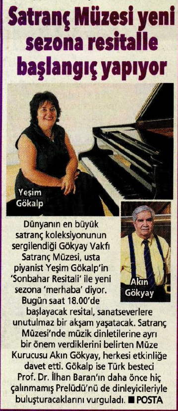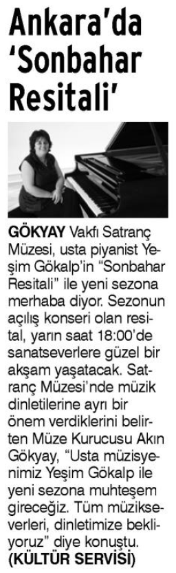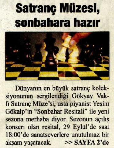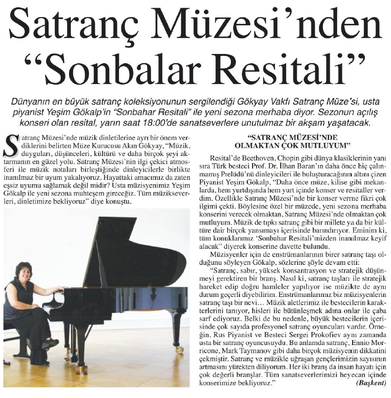 27.09.2018 / Başkent GazetesiSatranç Müzesi'nde ''Sonbahar Resitali''