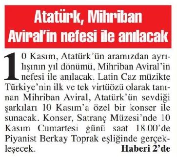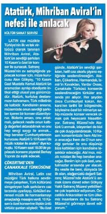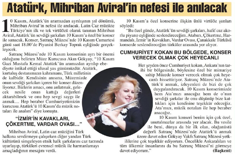 06.11.2018 / Başkent GazetesiAtatürk, Mihriban Aviral'in Nefesi ile Anılacak