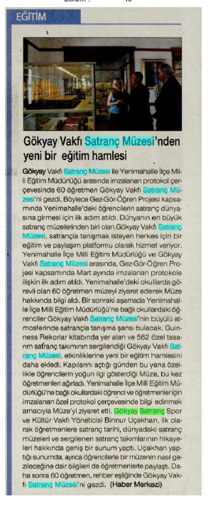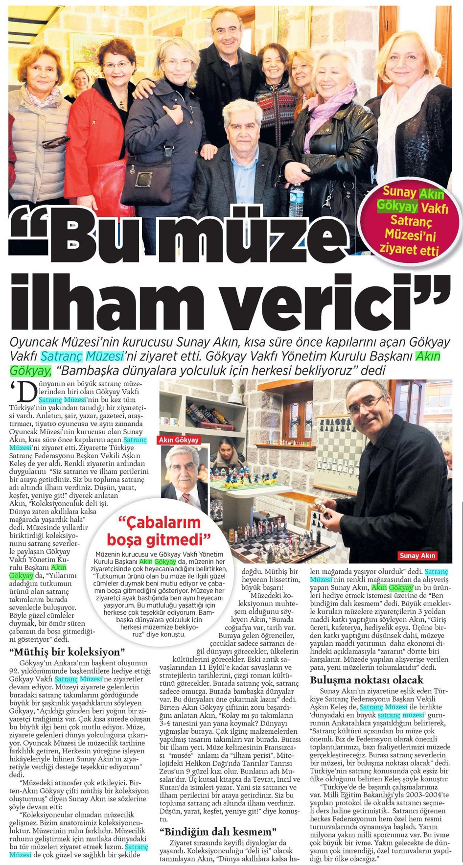 20.12.2015 / Zafer GazetesiGökyay Vakfı Satranç Müzesine Ziyaret