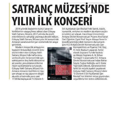 27.09.2018 / Başkent Gazetesi''Sonbahar Resitali'' ile Yeni Sezona Merhaba