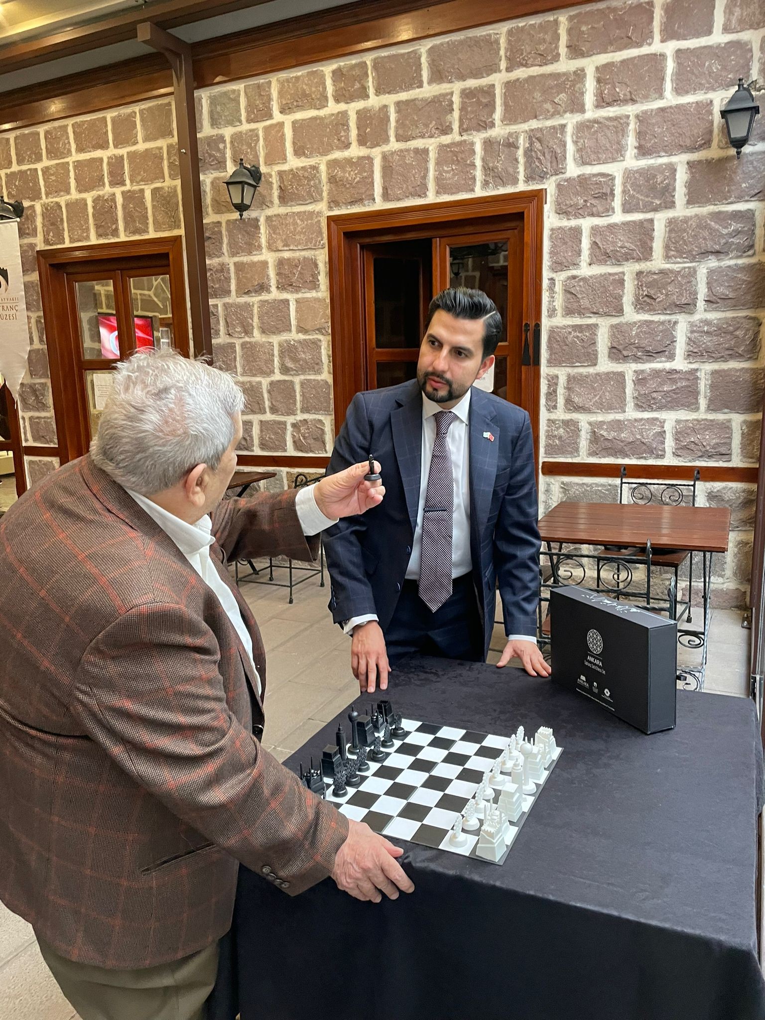 27 Ekim 2022 tarihinde müzemizi ziyaret eden Guatemala Cumhuriyeti’nin Ankara Büyükelçisi Jairo David Estrada Barrios, kalbi Guatemala’nın kuzeyinde atan Maya Medeniyeti’ne ait satranç takımını müzemize armağan etti. Guatemala’daki Tikal Ulusal Parkı’nda yer alan taş kalıntılar ve Maskeler Tapınağı gibi detayların kullanıldığı satranç takımı koleksiyonumuzun 727. Parçası olarak yerini alırken, kurucularımız Akın Gökyay ve Birten Gökyay da şehrimizi yansıtan Ankara Satranç Takımını Sayın Büyükelçimize hediye etti.