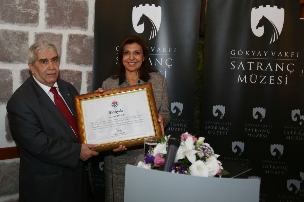 Gökyay, yaptığı konuşmada, “Bu müzeye gelenleri dünya yolculuğuna çıkaracağız. Başka başka ülkelerin tarihlerini, kültürlerini, ilginç özelliklerini satranç takımlarında görebilecekler. Tacikistan’dan Endonezya’ya, Kenya’dan Yeni Zelanda’ya, Mısır’dan Fransa’ya, İtalya’dan Azerbaycan’a tam 103 ülke 540 satranç takımında canlanıyor. Satranç strateji oyunudur, analitik düşünebilmektir. Analitik düşünebilen, iyi bir stratejiye sahip olanlar bugünü ve geleceği doğru planlayabilir.Özellikle politikacılara, iş adamlarına ve herkese satranç öğrenmeyi tavsiye ediyorum. Çünkü satranç başarının anahtarıdır. Gençlerimizi doğudan batıya mutlaka satrançla tanıştırmalı, onları barışın simgesinde birleştirmeliyiz.Satranç barışın oyunudur. Bir satranç masası, dünyanın dört bir yanından insanları bir masanın etrafında buluşturur ve iletişim kurmalarını, birbirlerini anlamalarını sağlar. Gençler, satranç öğrenin” dedi.