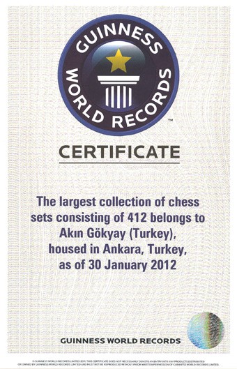 Akın Gökyay’ın 1975 yılında başladığı ve 412 satranç takımına ulaşan satranç koleksiyonu 31 Ocak 2012 tarihinde Guinness Rekorlar Kitabına girmiş; Türkiye’deki tescilli, ilk ve tek satranç koleksiyonudur.